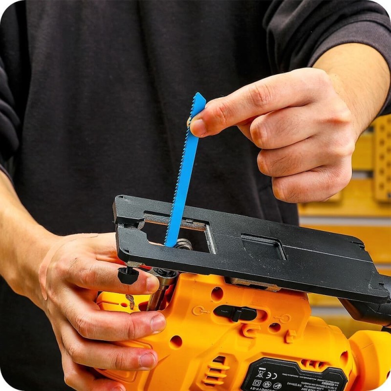 Jeder möchte in seiner Wohnung oder am Arbeitsplatz Ordnung und Übersichtlichkeit bewahren, nicht wahr? Hier kommt das Staubabsaugsystem zum Einsatz, mit dem Sie die beim Schneiden entstehenden Späne und Staubpartikel absaugen können. Dank dieser Lösung können Sie in Ihrer Umgebung für Ordnung und Sauberkeit sorgen. Die Stichsäge kann mit einem eigenen Gebläse ausgestattet sein oder mit einem separaten Staubsauger betrieben werden. Durch das Entfernen von Spänen und Partikeln erhalten Sie eine bessere Sicht auf den Schnittbereich.