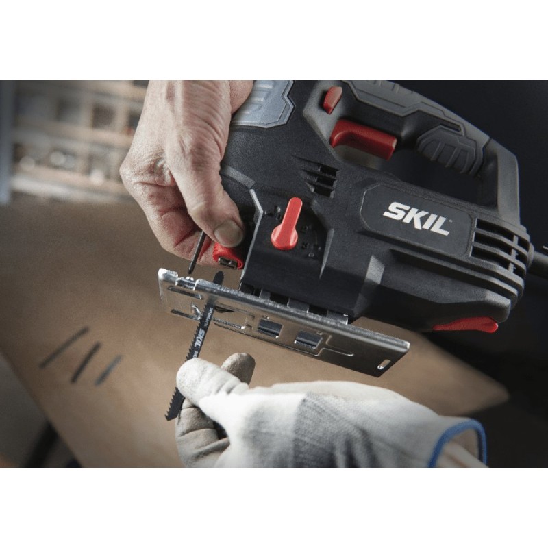 Die Stichsäge SKIL 4390 AA ist mit dem innovativen Sägeblattwechselsystem „Clic“ ausgestattet, das einen schnellen und einfachen Wechsel ohne zusätzliche Werkzeuge ermöglicht. Diese Lösung spart Zeit und erhöht die Arbeitseffizienz.