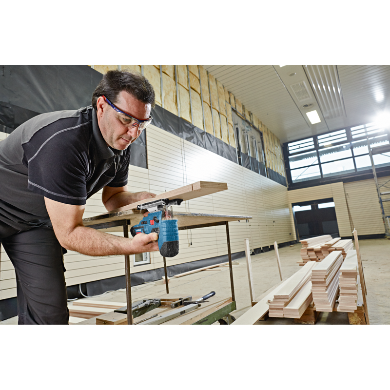 • Die äußerst kompakte, leichte Akku-Stichsäge sorgt für perfekte Handhabung und ideale Führung entlang kurviger Linien