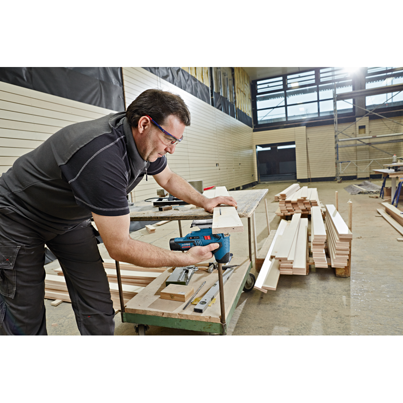 Jeder möchte in seiner Wohnung oder am Arbeitsplatz Ordnung und Übersichtlichkeit bewahren, nicht wahr? Hier kommt das Staubabsaugsystem zum Einsatz, mit dem Sie die beim Schneiden entstehenden Späne und Staubpartikel absaugen können. Dank dieser Lösung können Sie in Ihrer Umgebung für Ordnung und Sauberkeit sorgen. Die Stichsäge kann mit einem eigenen Gebläse ausgestattet sein oder mit einem separaten Staubsauger betrieben werden. Durch das Entfernen von Spänen und Partikeln erhalten Sie eine bessere Sicht auf den Schnittbereich.