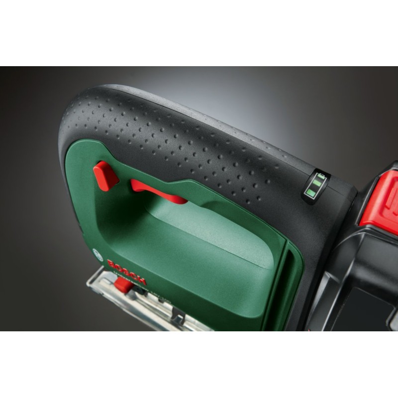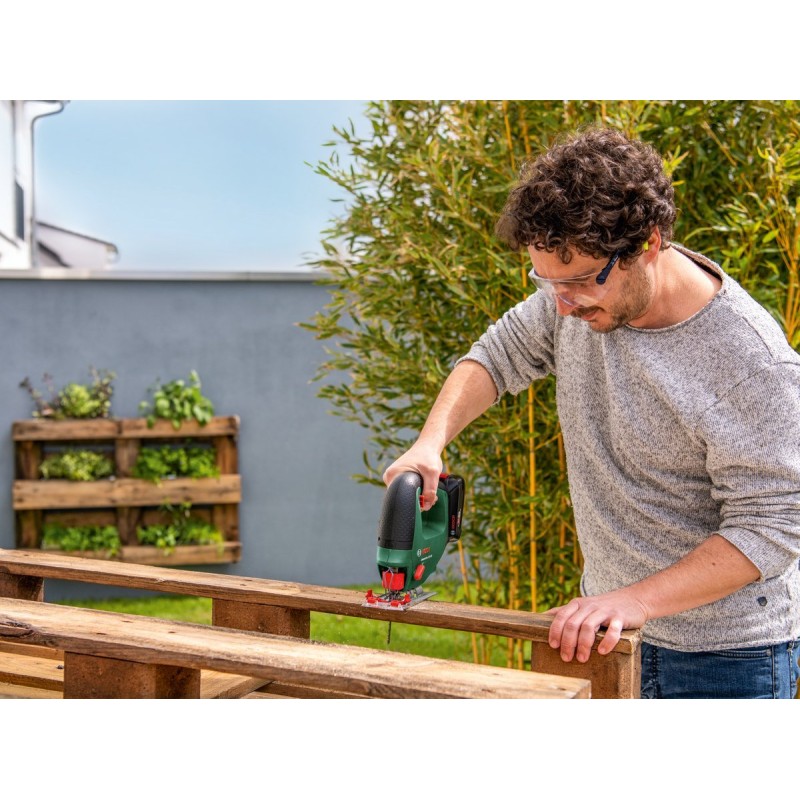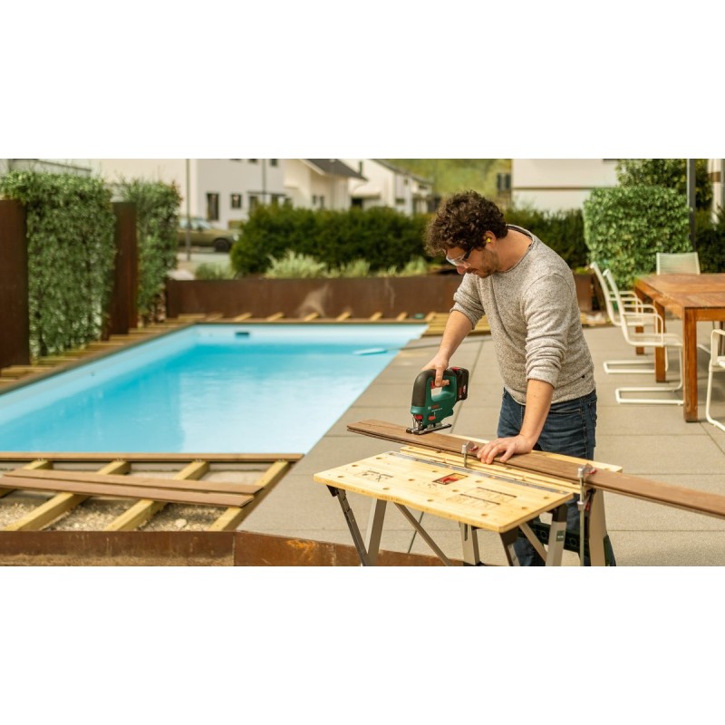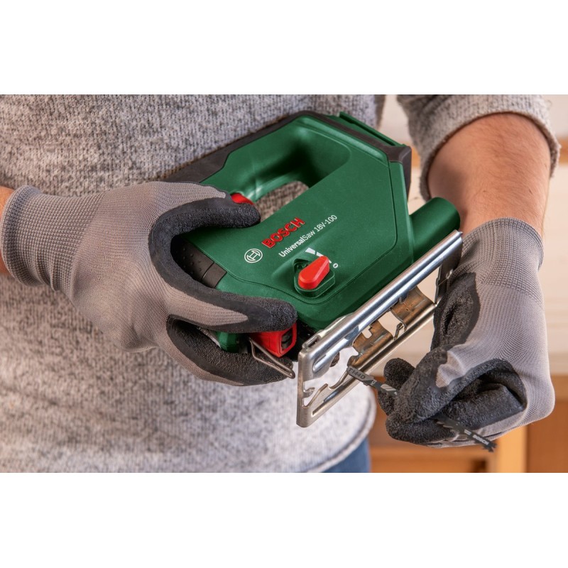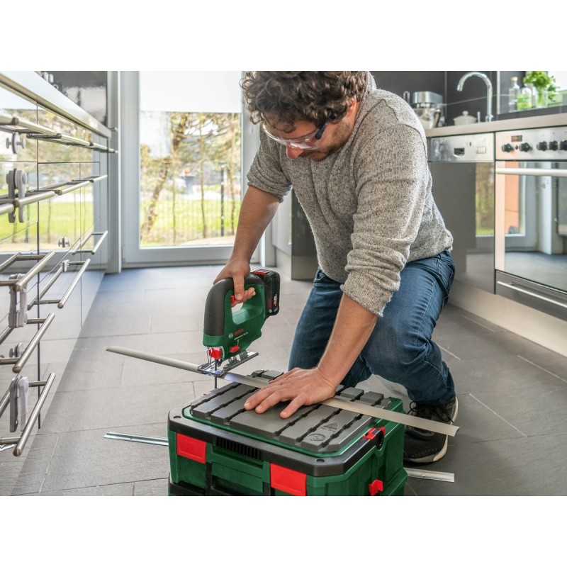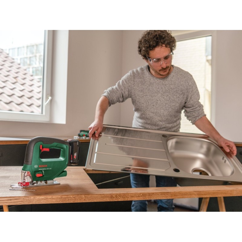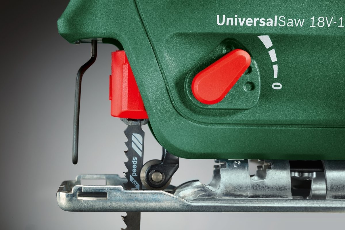 Das Akku-Modell UniversalSaw 18V-100 ist für die unterschiedlichsten Schneidarbeiten konzipiert – es kann unter anderem zum Schneiden von Parkett oder Regalböden verwendet werden. Es ermöglicht Schnitte bis zu einer Tiefe von 100 mm in Holz sowie bis zu 8 mm in Stahl und ist zusammen mit einer Auswahl an praktischem Zubehör erhältlich. Die Stichsäge bietet hohe Arbeitsqualität dank der 4-stufigen Sägeblattoszillation, die die Arbeit des Sägeblatts unterstützt und das Schneiden selbst härtester Materialien ermöglicht. Erfahrene und unerfahrene Heimwerker werden die komfortable Sanftanlauf-Funktion und die Möglichkeit der Leistungsanpassung über den Drehzahlregler sowie den einfachen Sägeblattwechsel zu schätzen wissen. Das Werkzeug ist Teil der POWER FOR ALL ALLIANCE. Ein Akku kann zur Stromversorgung mehrerer Werkzeuge verschiedener Marken verwendet werden.