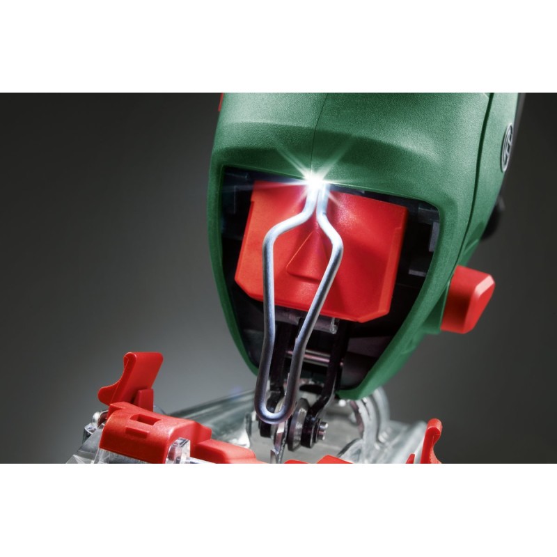 Jeder möchte in seiner Wohnung oder am Arbeitsplatz Ordnung und Übersichtlichkeit bewahren, nicht wahr? Hier kommt das Staubabsaugsystem zum Einsatz, mit dem du die beim Schneiden entstehenden Späne und Staubpartikel absaugen kannst. Dank dieser Lösung kannst du in deiner Umgebung für Ordnung und Sauberkeit sorgen. Die Stichsäge kann mit einem eigenen Gebläse ausgestattet sein oder mit einem separaten Staubsauger betrieben werden. Durch das Entfernen von Spänen und Partikeln erhalten Sie eine bessere Sicht auf den Schnittbereich.