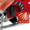 • Sonstiges: werkzeuglose Neigungsverstellung bis 45° nach links und rechts, werkzeuglose Sägeblatteinstellung, Ausblasfunktion (abschaltbar)