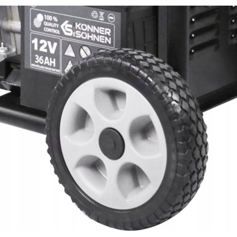 Der Generator KS 9500iDE ATSR ist mit einem Transportset mit Rädern und klappbaren Griffen ausgestattet, was das Manövrieren erleichtert. Dadurch lässt er sich leicht an verschiedene Orte transportieren, was seine Funktionalität und den Bedienkomfort erhöht.