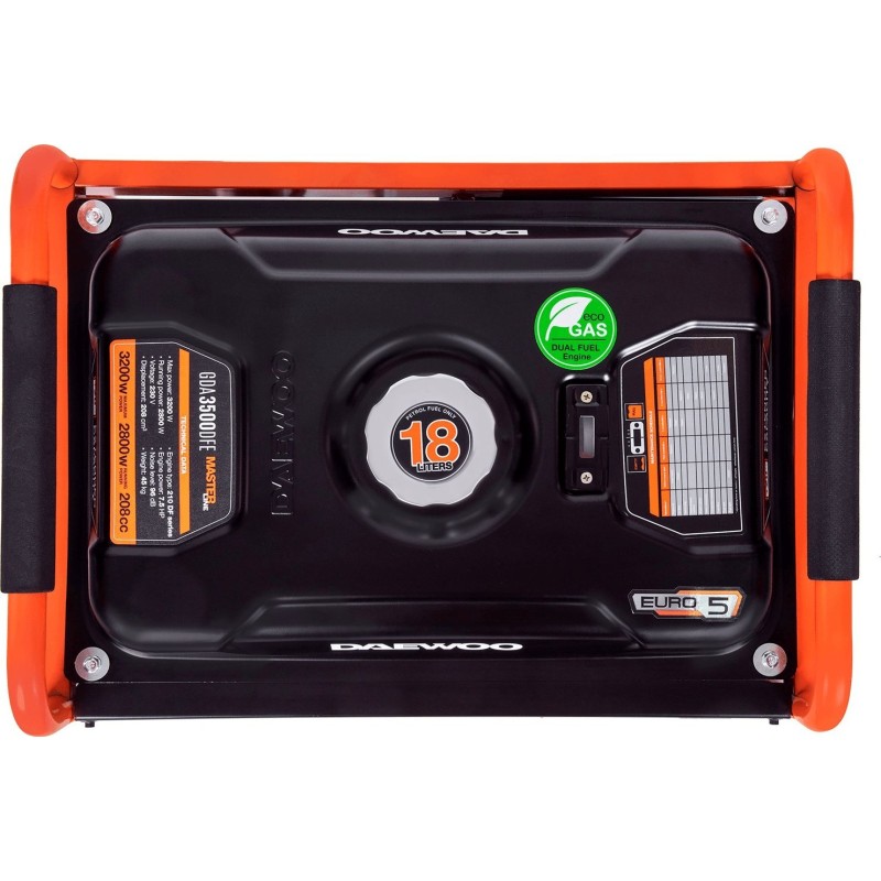 Der Daewoo GDA 3500 DFE hebt sich von anderen Generatoren ab, da er über ein Dual-Fuel-System verfügt. Was bringt uns das? Neben der Versorgung des Generators mit Benzin können wir auch ein Propangas-Butangas-Gemisch als Energiequelle nutzen. Das Gas wird größtenteils in der Brennkammer des Motors verbrannt, sodass während des Betriebs weniger schädliche Abgase ausgestoßen werden. Ein solches Kraftstoffsystem ermöglicht eine bis zu 1,5-mal längere Lebensdauer des Motors. Natürlich betragen die Betriebskosten eines Zweistoffaggregats im Vergleich zu einem Benzinaggregat etwa 50 %.