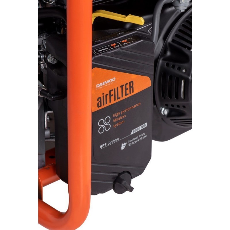Dieser Generator ist mit einem fortschrittlichen Luftfiltersystem ausgestattet. Dies bietet zusätzlichen Schutz für den Motor, indem Staub und Verunreinigungen aufgefangen werden, die zu einer Überhitzung des Motors führen können.
