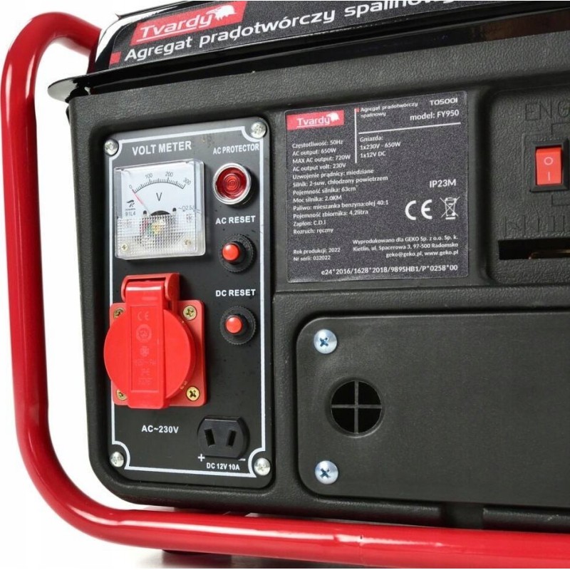Professioneller Stromgenerator mit einem Zweitakt-Verbrennungsmotor mit 66 ccm Hubraum und 2 PS Leistung. Der Generator verfügt über eine Kupferwicklung, wodurch er eine maximale Momentanleistung von 720 W erzeugen kann. Die Dauerleistung, mit der der Generator belastet werden kann, beträgt 650 W. Der Kraftstofftank mit einem Fassungsvermögen von 4,2 l ermöglicht einen unterbrechungsfreien Betrieb (bei mittlerer Belastung) von ca. 6 Stunden.