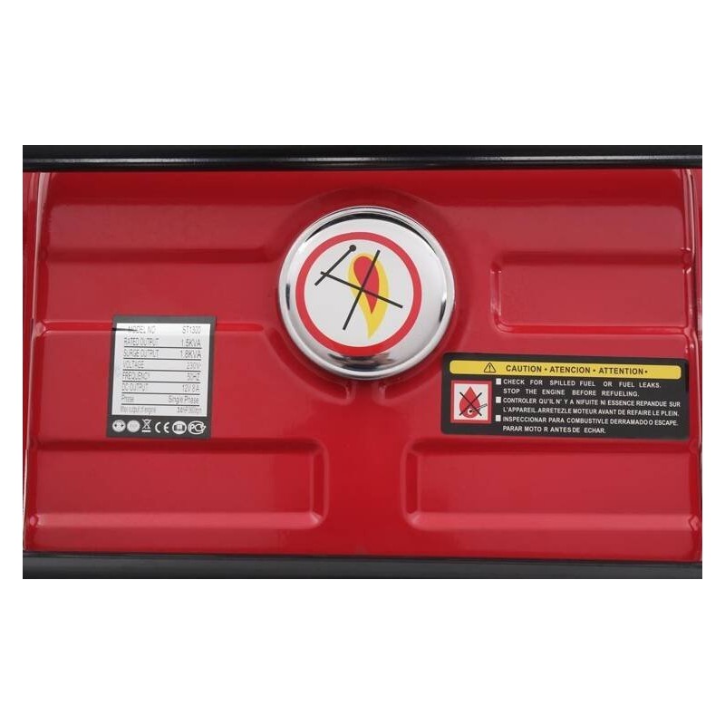 Motortyp: Verbrennungsmotor, Viertakt. Maximale Motorleistung: 3,0 PS. Anzahl der Zylinder: 1. Anlasser: manuell. Kraftstofftankinhalt: 5,5 l. Maximale Generatorleistung: 1500 W. Dauerleistung des Generators: 1300 W. Spannung: 230 V / 50 Hz – einphasig. Anzahl der Steckdosen: 1 x 12 V, 2 x 230 V. Spannungsregler: nein. Spannungsstabilisator (AVR): nein. Spannungsmesser: ja. Transportrollen: nein.