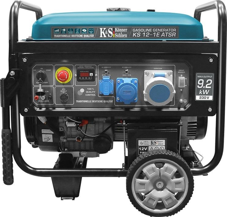 Das Modell KS 12-1E ATSR ist ein Benzingenerator mit maximaler Generatorleistung aus einem Einzylindermotor! Der Generator bietet die Möglichkeit, ein externes ATS-System anzuschließen. Das komfortable, ergonomische Bedienfeld mit Not-Aus-Taste und multifunktionalem LED-Display ermöglicht die genaue Messung verschiedener Parameter – Spannung, Frequenz, Betriebsstunden und Ölstand. Der Generator ist mit gesicherten Steckdosen ausgestattet, die es ermöglichen, die maximale vom Gerät gelieferte Leistung zu nutzen. Im Lieferumfang des Generators sind auch die entsprechenden Stecker enthalten. Der geräumige 55-Liter-Kraftstofftank gewährleistet einen langen und unterbrechungsfreien Betrieb.
