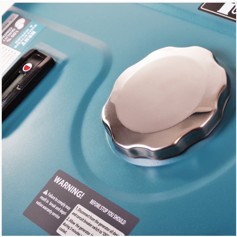 Ausgestattet mit einem überdimensionierten Stahlkraftstofftank, der die Betriebszeit des Generators ohne Nachfüllen verlängert. Am Tank befindet sich eine Kraftstoffanzeige für eine bequeme Bedienung.