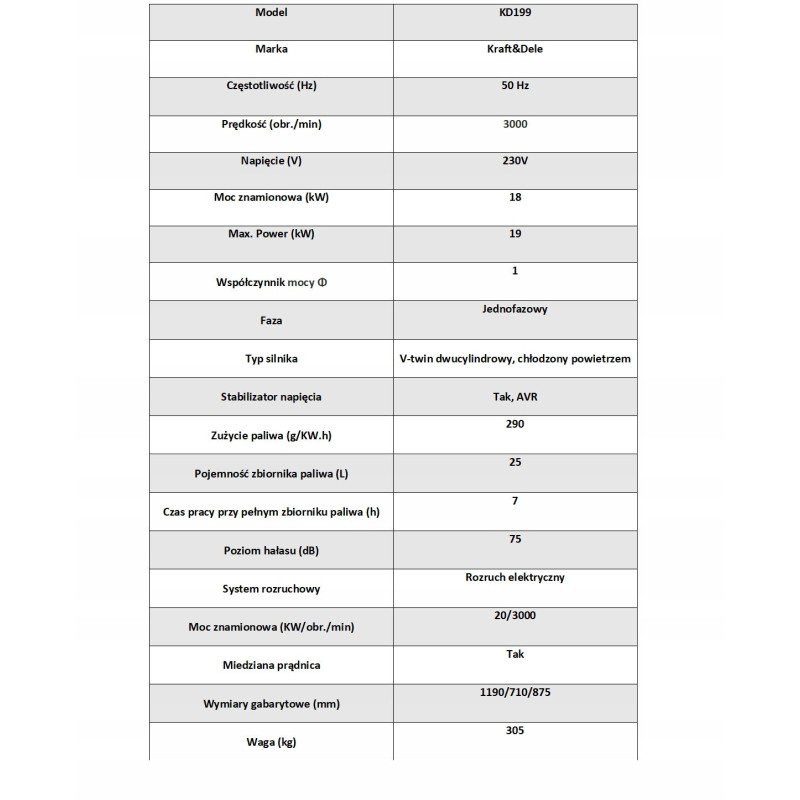 Kategorie Stromerzeuger Marke Kraft&Dele EAN13 5903957005768