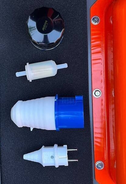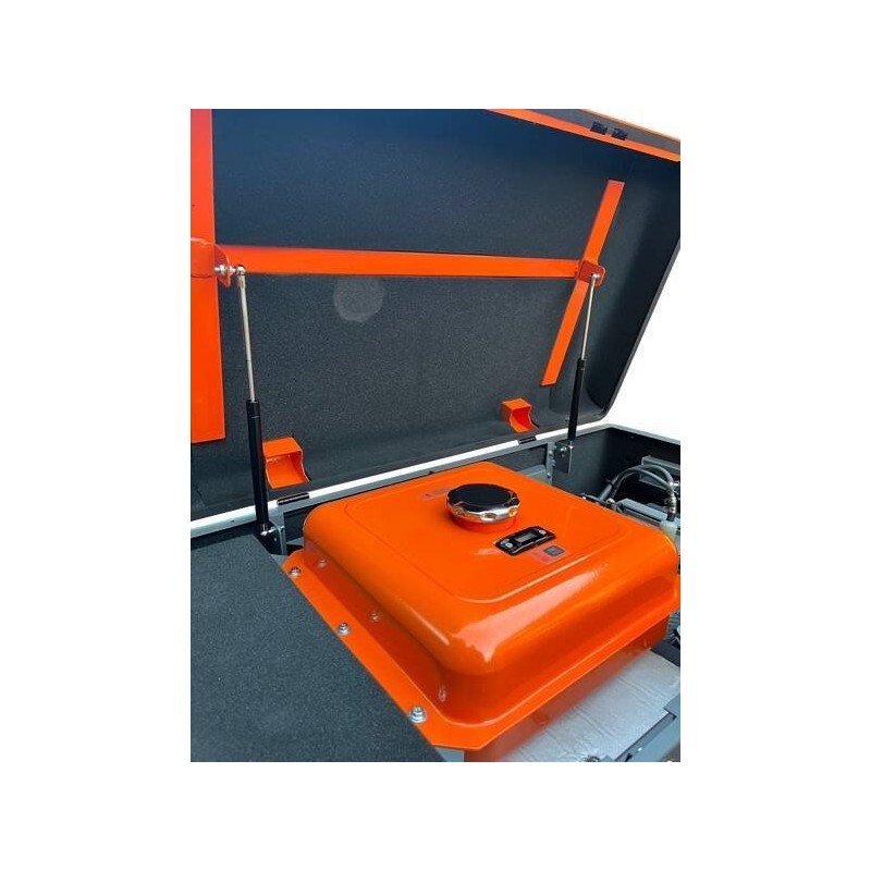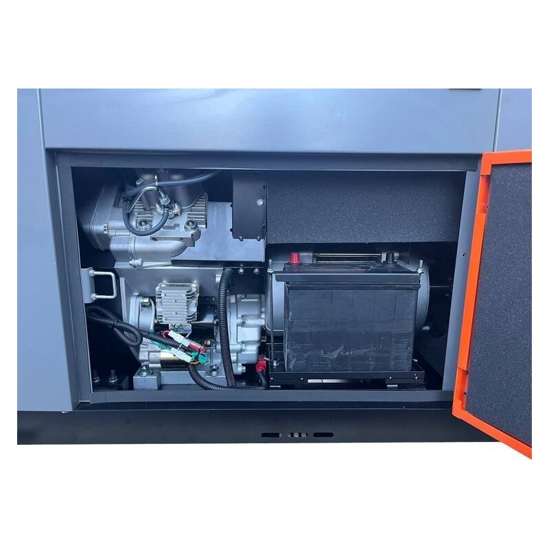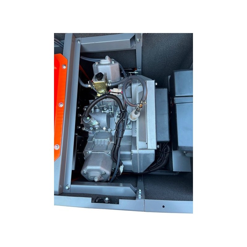 Er ist für die Erzeugung von 230-V-Wechselstrom mittels eines 12/13-kW-V-Twin-Zweizylinder-Verbrennungsmotors ausgelegt.
