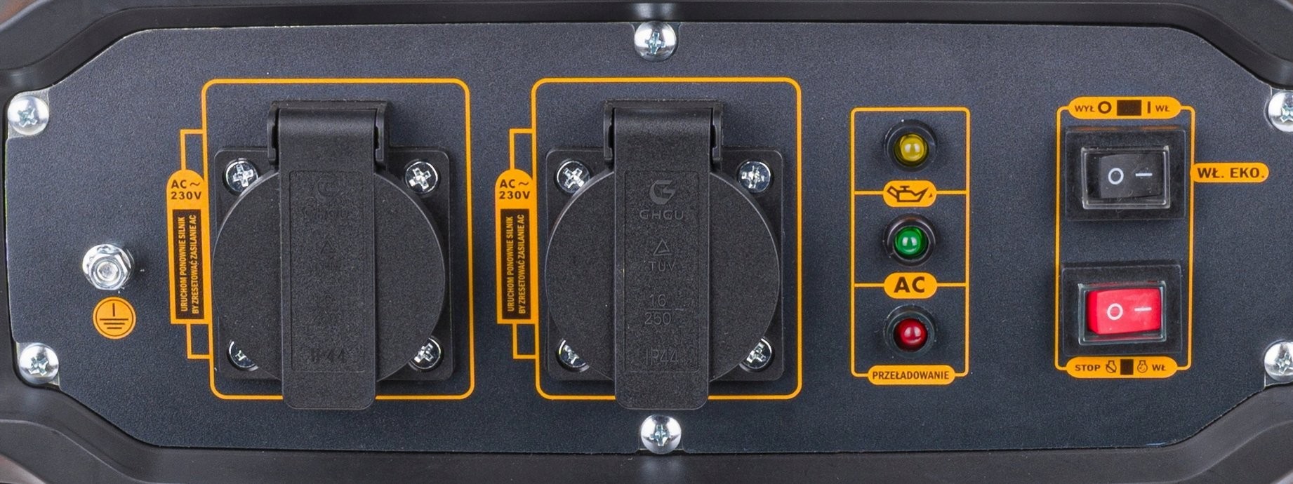 Der Generator erzeugt Strom mit einer Spannung von 230 V (2 Steckdosen). Die ideale Lösung, wenn auf dem Grundstück oder im Gelände kein Stromanschluss vorhanden ist. Ausgestattet mit einem Voltmeter und Sicherheitsvorrichtungen. Der Generator verfügt über einen Ölstandssensor, der den Motor bei zu niedrigem Ölstand automatisch abschaltet. Der Start des Generators erfolgt manuell über ein Seil. Der Generator wird im Handwerk, im Bauwesen auf Grundstücken und in Gärten zur Versorgung von Elektrowerkzeugen, Pumpen und Beleuchtung eingesetzt.