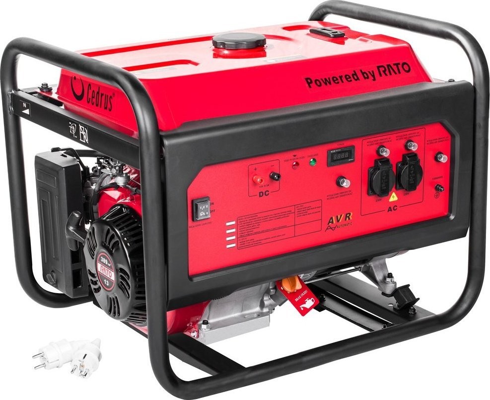 Die Cedrus-Stromaggregate sind neu in unserem Angebot. Wir haben in ihnen zuverlässige und bewährte Rato-Motoren verbaut, in diesem Modell mit einem Hubraum von 212 cm³, einer Nennleistung von 2700 W und einer Startleistung von 3000 W.Der CEDRUS AG3-1F ist ein Stromaggregat mit einem Gesamtgewicht von 45 kg. Ein speziell entwickelter Generator mit Kupferwicklung garantiert einen zuverlässigen Betrieb. Das AVR-System sorgt für eine Spannungsstabilisierung, um die angeschlossenen Verbraucher vor Spannungsschwankungen zu schützen. Ein Ölsensor schaltet den Generator bei niedrigem Ölstand ab und schützt so den Motor vor einem Festfressen. Zusätzlich sind unsere Generatoren mit Sicherungen ausgestattet.