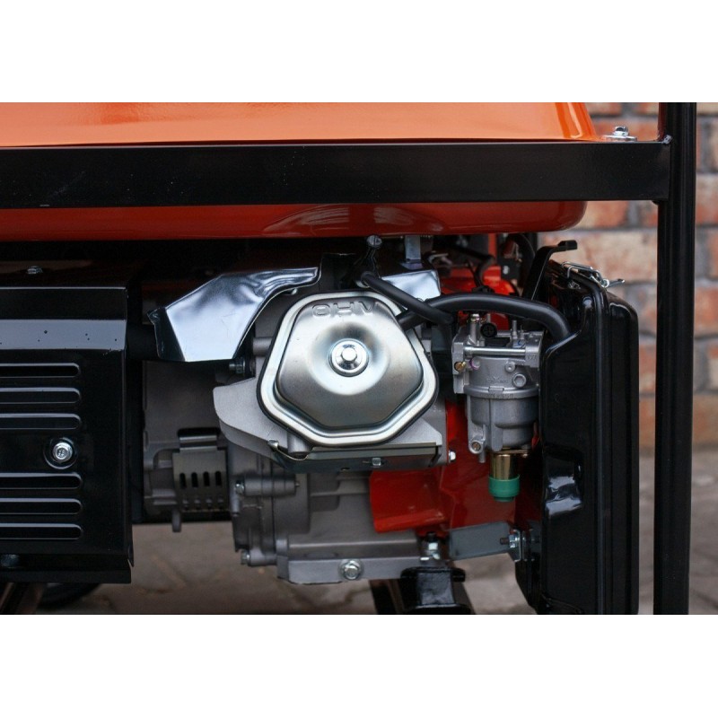 Der Stromgenerator mit Benzinmotor ist mit einem robusten Stahlrahmen ausgestattet, der den Generator vor verschiedenen Arten von Beschädigungen schützt. Robuste Räder und stabile Griffe ermöglichen einen einfachen Transport des Extralink-Benzingenerators.