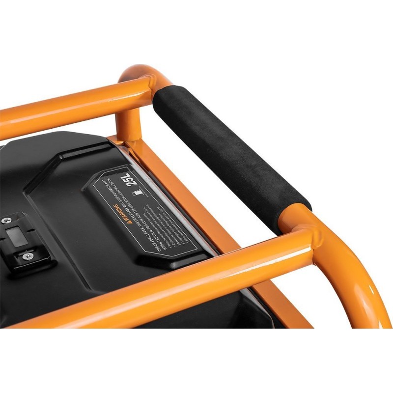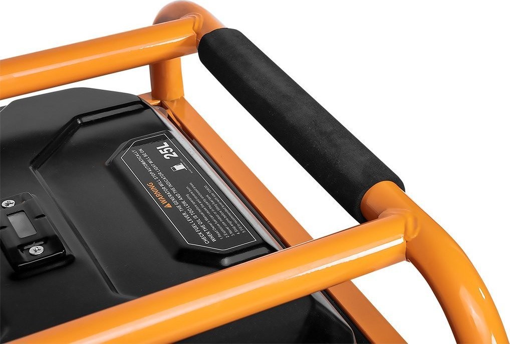 Hochwertiger Stromgenerator zur Versorgung verschiedener elektrischer Geräte an Orten ohne Netzanschluss. Leistung: 6000 W/6500 W, Steckdosen: 1x12 V + 2x230 V (16 A) + 1x230 V (32 A), Benzinmotor 11 kW/17,6 PS, Tank 25 l, minimaler Kraftstoffverbrauch 0,313 g/kWh, durchschnittlicher Kraftstoffverbrauch 2,63 l/h, Abmessungen (LxBxH) 815x530x560, Öl SAE 15W-30, Ölbehälter 1,1 l, Kraftstoff 92, 95, 98, LwA = 97 dB, Gewicht 85 kg, 15 PS, EURO V, AVR, IP 23M, 25 A, Zündkerzentyp F6RTC, Drehzahl 3000 min, Hubraum 420 cm³