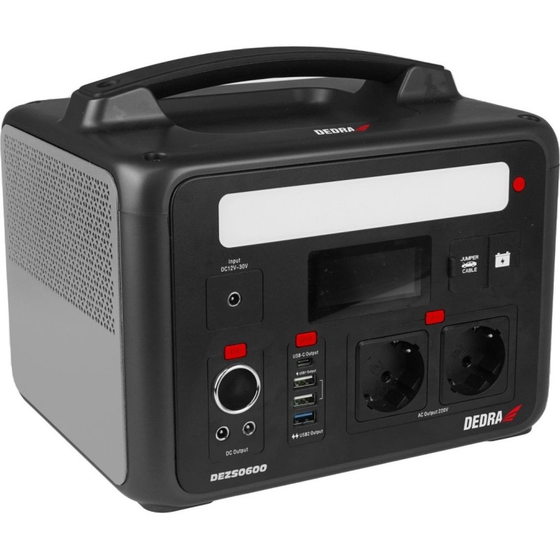 Die Stromversorgungsstation DEDRA DEZS0600 ist ein Gerät, das dem Benutzer die Stromversorgung verschiedener elektrischer Geräte ermöglicht.