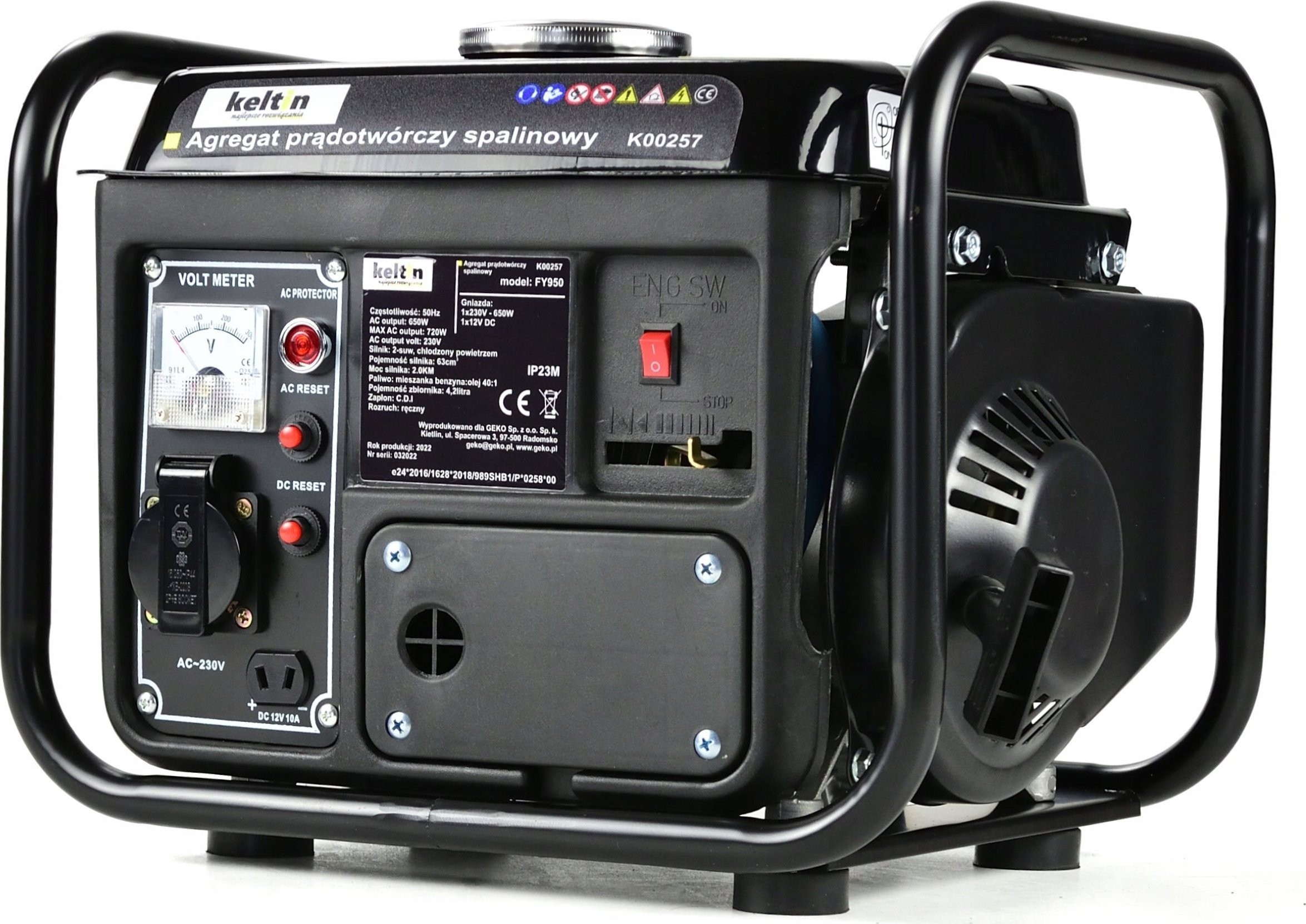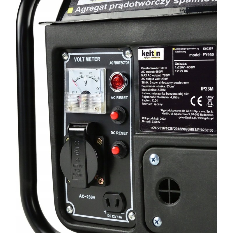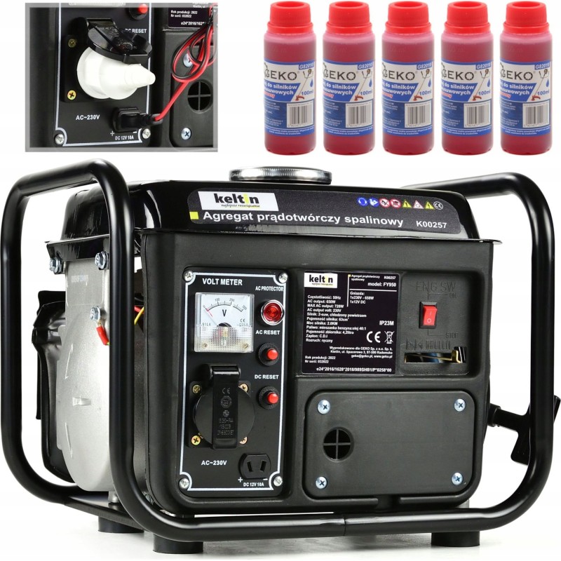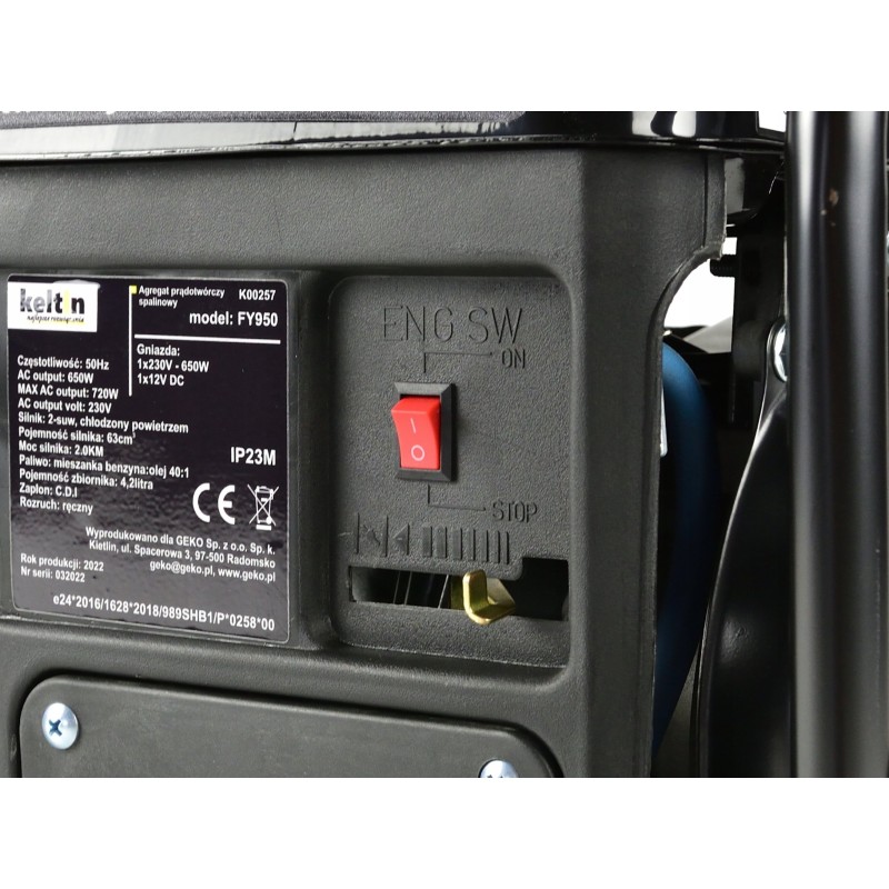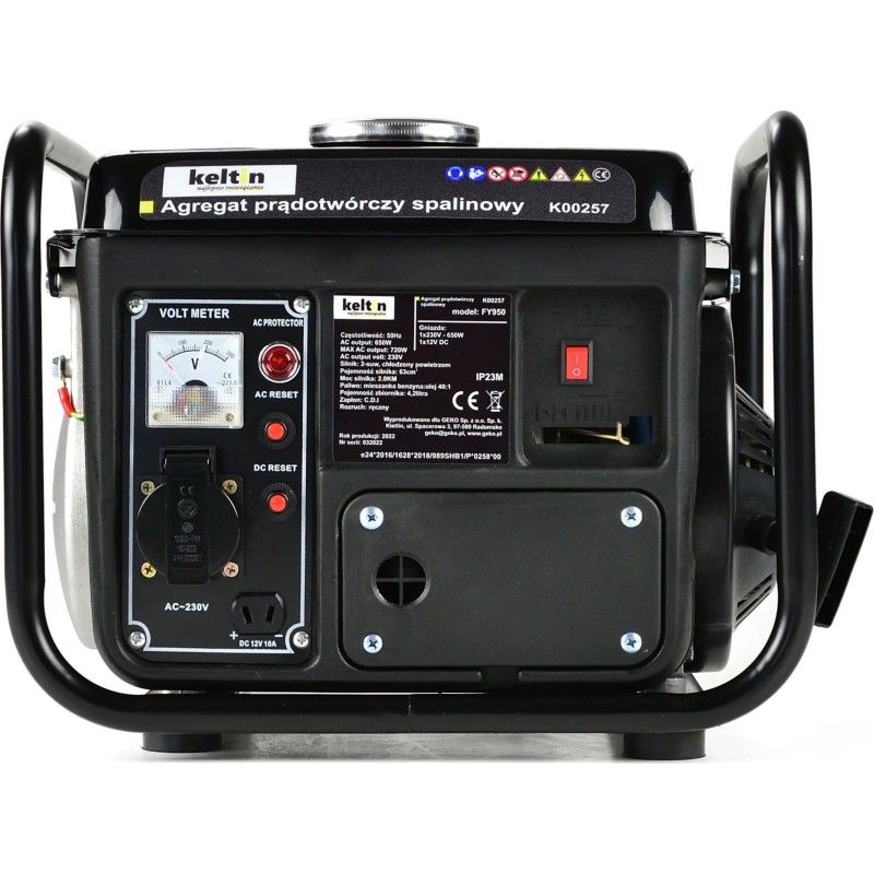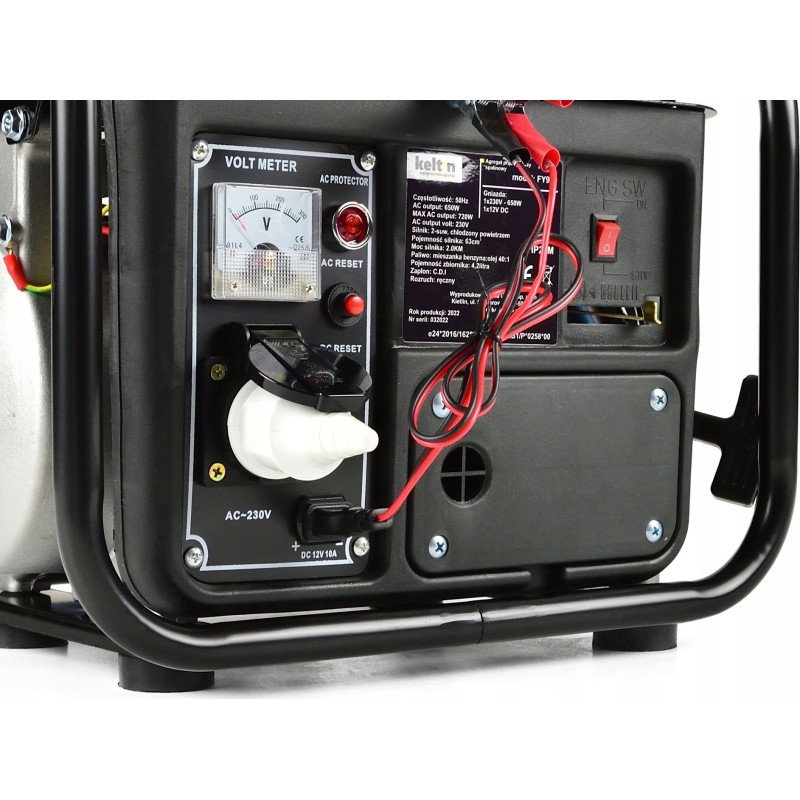 Der Stromgenerator Keltin FY950 ist mit einem Zweitakt-Verbrennungsmotor mit 63 cm³ Hubraum und 2 PS Leistung ausgestattet.