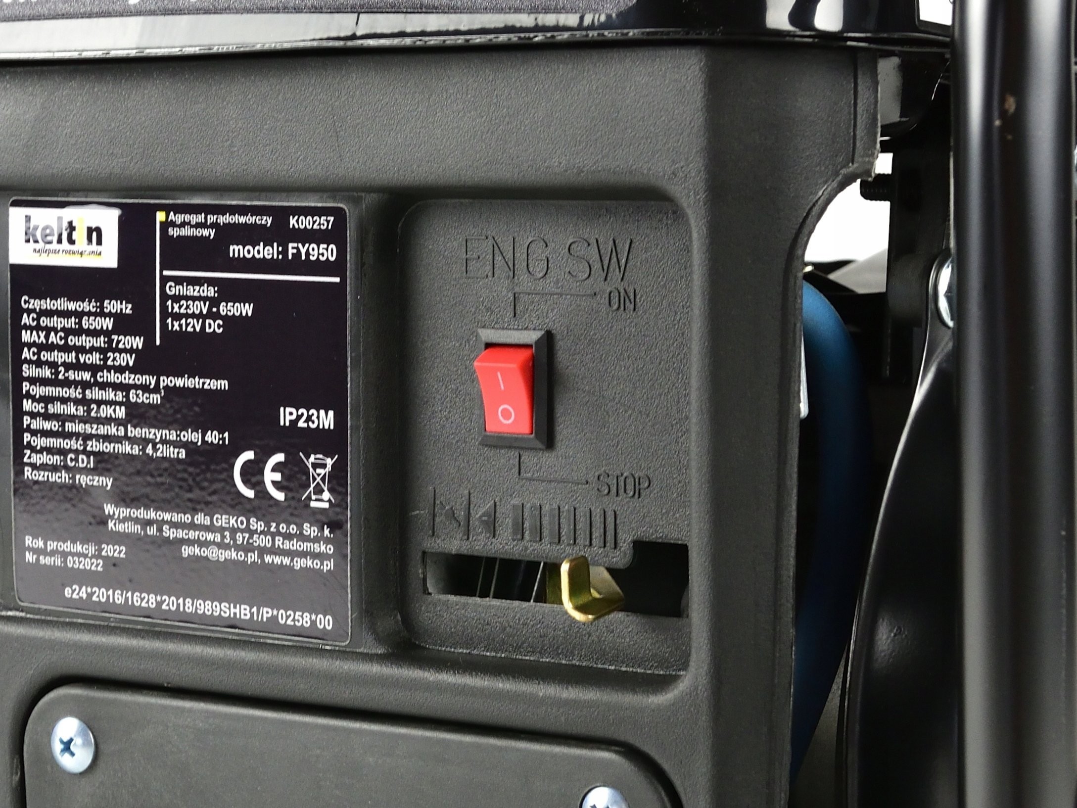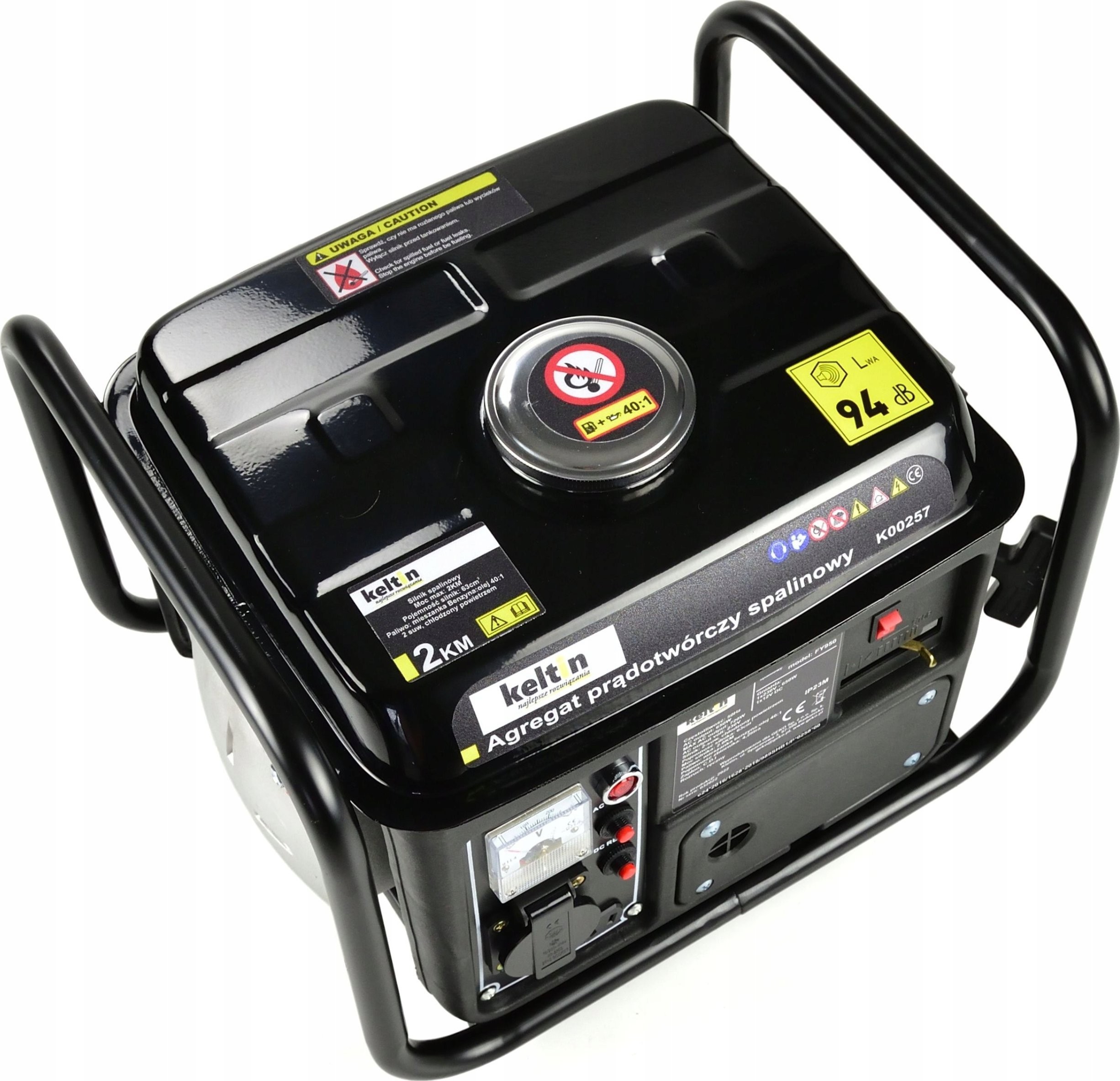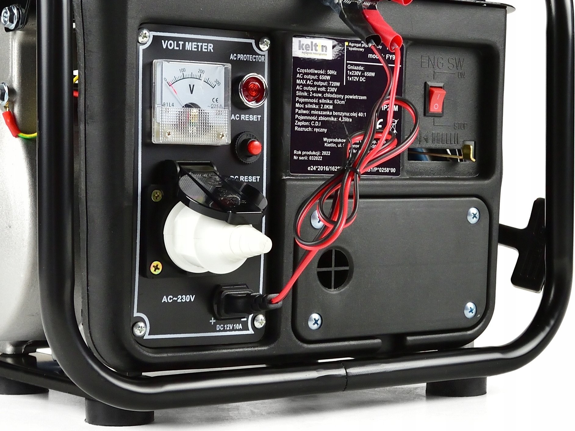 Der Stromgenerator Keltin FY950 ist mit einem Zweitakt-Verbrennungsmotor mit 63 cm³ Hubraum und 2 PS Leistung ausgestattet.