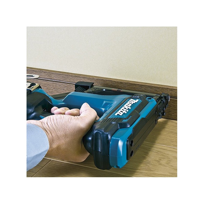 Der Akku-Stiftnagler Makita DPT353ZJ wurde mit Blick auf den Komfort des Anwenders und die Arbeitseffizienz entwickelt. Dank eines modernen Mechanismus, der den erforderlichen Druck verringert, lassen sich lange Stifte mühelos einschlagen, was den Arbeitskomfort erheblich steigert. Es ist das perfekte Werkzeug für alle, die bei ihren Projekten Wert auf Präzision und Effizienz legen.