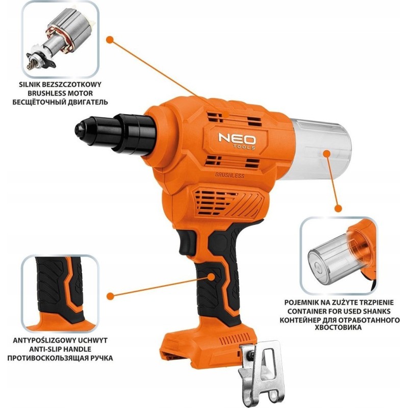 • Die Nietmaschine der Marke NEO bietet eine hohe Nietgeschwindigkeit und einen reibungslosen Betrieb.