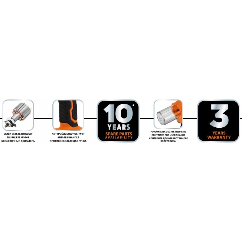 • Das Werkzeug ist mit einem praktischen Behälter für verbrauchte Stifte ausgestattet.