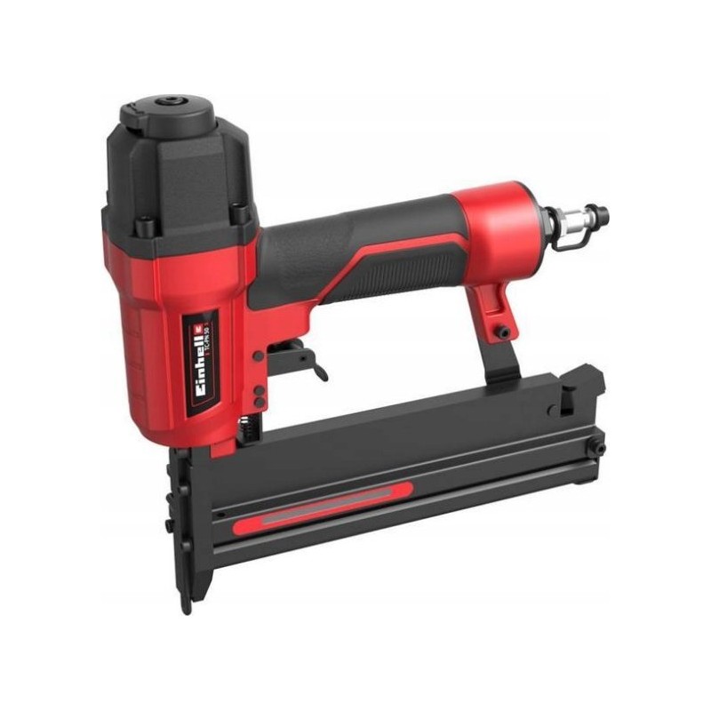 Der Einhell TC-PN 50 Druckluft-Tacker ist ein vielseitiges Werkzeug für den Einsatz in Werkstatt, Haus und Garage. Das multifunktionale 2-in-1-Gerät besteht aus einem Druckluft-Tacker und einem Druckluft-Nagler und eignet sich ideal für Reparatur- und Renovierungsarbeiten. Der rutschfeste Griff ermöglicht sicheres Arbeiten. Der Hochleistungs-Tacker gewährleistet eine Leistung ab einem Schlauchinnendurchmesser von 9 Millimetern. Eine Sicherheitsnase verhindert ein versehentliches Auslösen des Geräts. Die Füllstandsanzeige zeigt die Anzahl der verbleibenden Heftklammern oder Nägel an. Für präzises Arbeiten lässt sich die Einstichtiefe des Geräts feinjustieren. Im Lieferumfang enthalten sind 500 Heftklammern mit einer Länge von 16/25/40 mm, 1.000 Nägel mit einer Länge von 25/40 mm, 1 Ölbehälter, 1 Steckverbinder und 2 Inbusschlüssel. Lieferung im praktischen Koffer für Transport und Aufbewahrung.