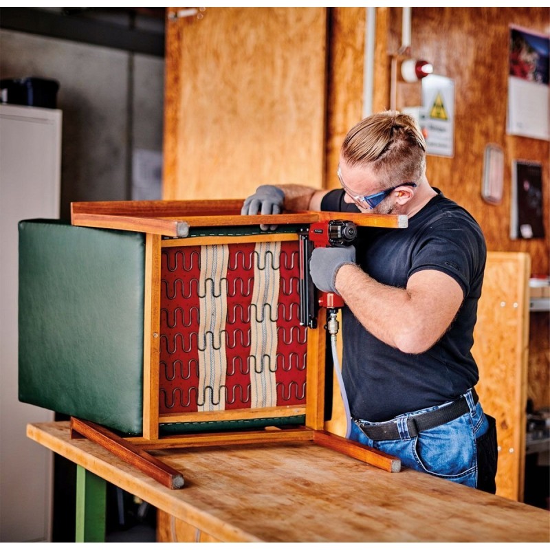 • 2-in-1-Multifunktionswerkzeug, bestehend aus einem Druckluft-Tacker und einem Druckluft-Nagler