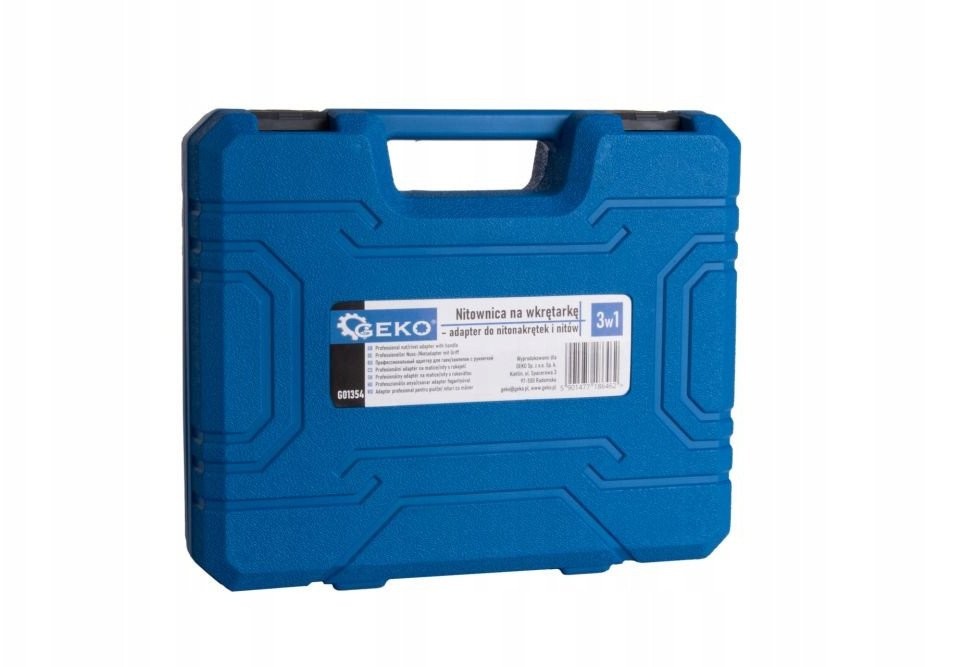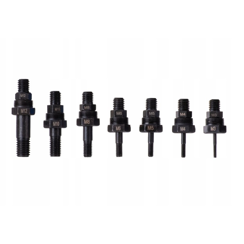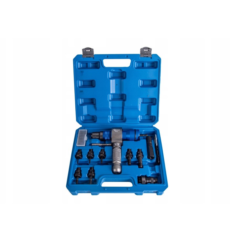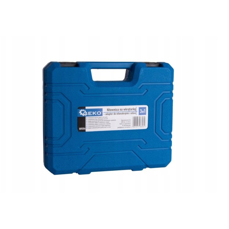 • Im Lieferumfang enthalten: Nietmaschine, Adapter, Aufbewahrungs- und Transportkoffer, Köpfe und Muttern: M3, M4, M5, M6, M8, M10, M12, Köpfe: 2,4 mm, 3,2 mm, 4,0 mm, 4,8 mm, 6,0 mm, 6,4 mm