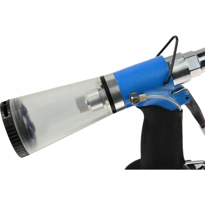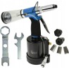 Hochwertige pneumatische Nietmaschine für den Einsatz mit Blindnieten mit einem Durchmesser von 2,4 mm bis 6,4 mm. Ermöglicht die Herstellung dauerhafter Verbindungen mit Nieten aus Aluminium, Edelstahl, Stahl und Kupfer.