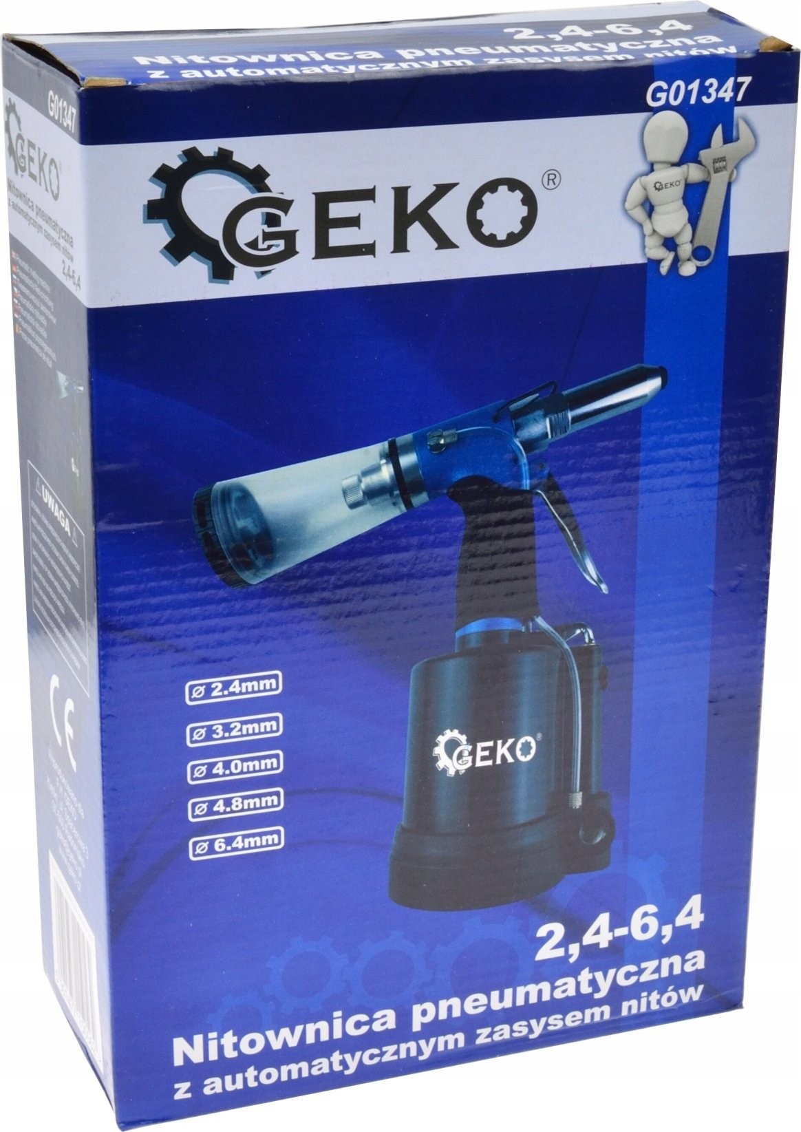 Geko Druckluft-Nietmaschine mit automatischer Zuführung für Nieten von 2,4 bis 6,4 mm (10)