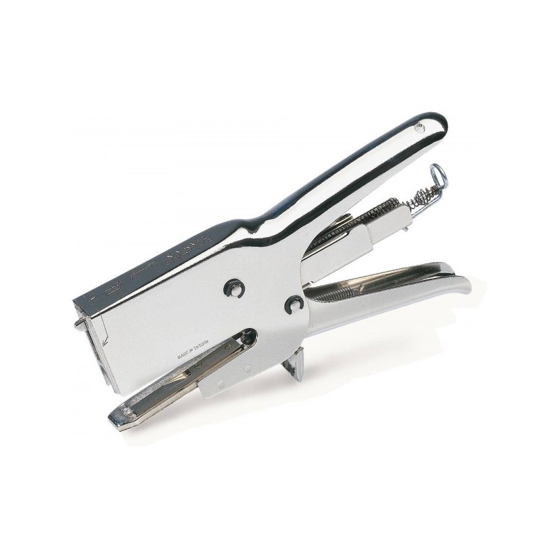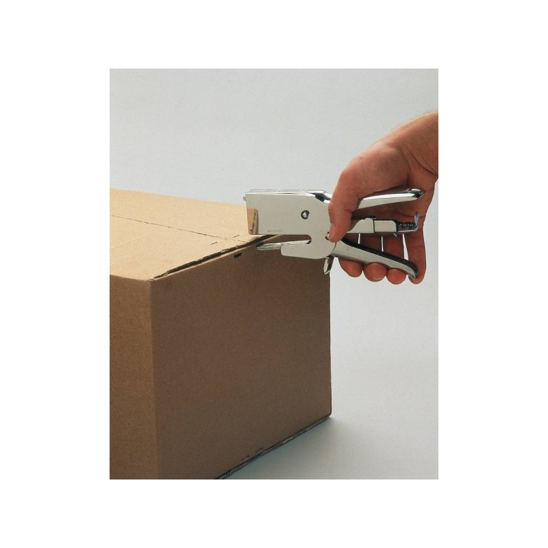 • Kann dicke und harte Materialien heften, darunter Wellpappe, Folien, Papier, Kunststoffe usw.