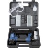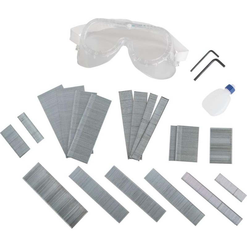 Der Druckluftnagler/Hefter ist dank seines um 360° verstellbaren Auslasses einfach zu bedienen. Das Set enthält den Nagler/Hefter, 1000 Nägel, 1000 Heftklammern, einen Inbusschlüssel, eine Schutzbrille sowie eine Flasche Öl. Alles ist übersichtlich in einem profilierten Koffer untergebracht.