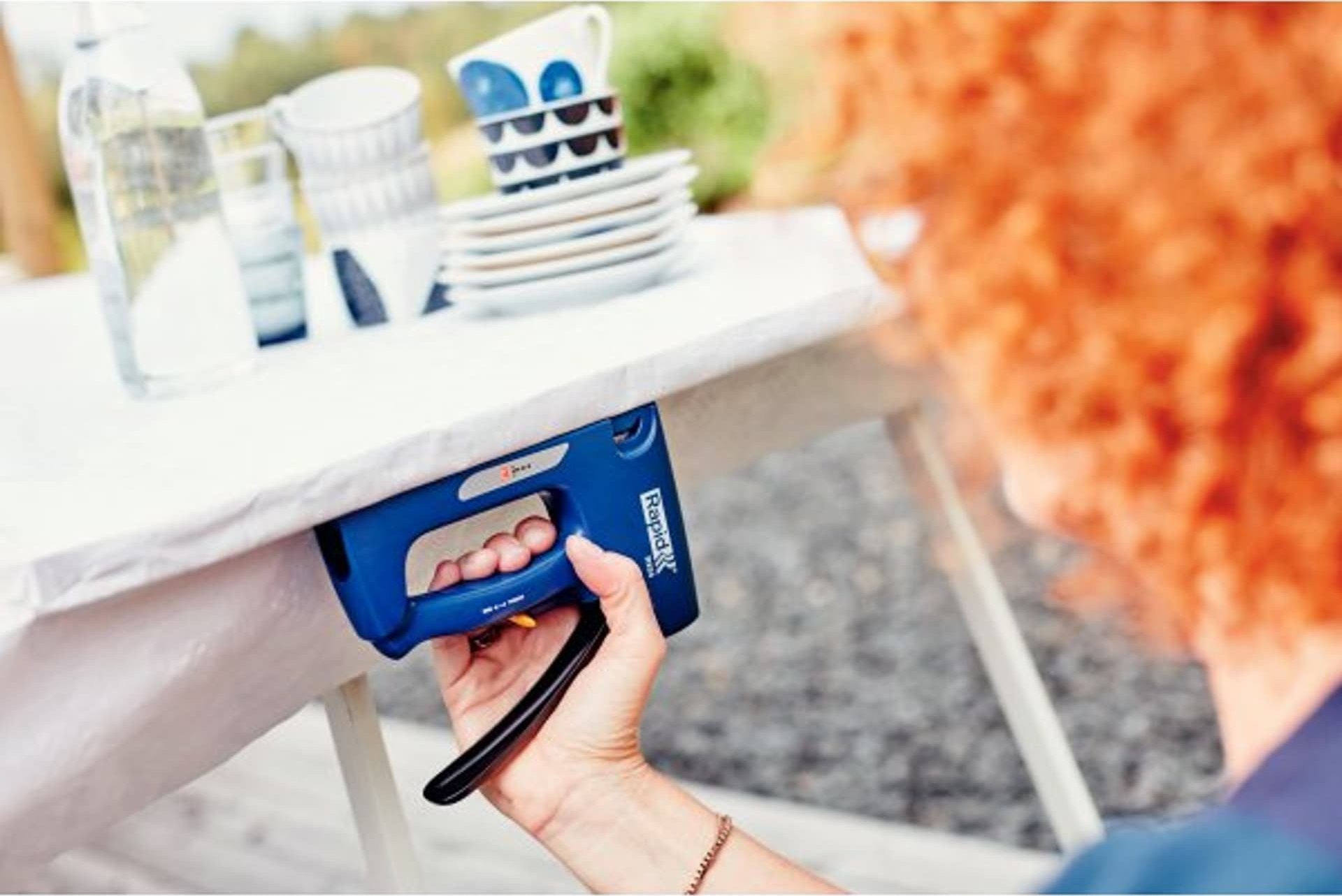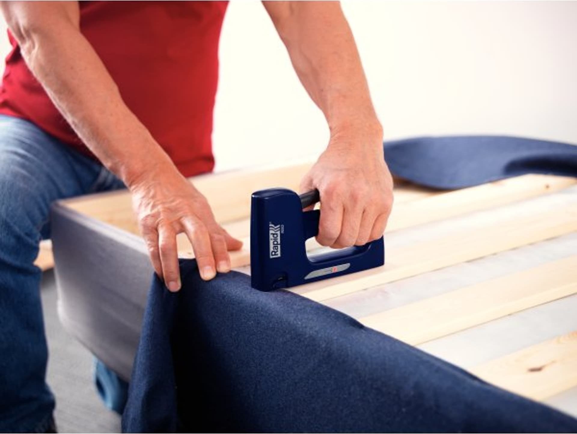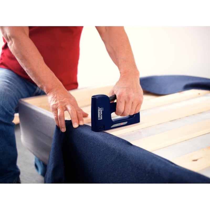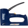 Ein sehr leistungsstarker Handtacker für Heimwerker. Das Werkzeug verfügt über eine Einstellfunktion, die maximale Kraft beim Heften mit langen Klammern oder bei der Arbeit mit harten Materialien gewährleistet. Der ergonomische Griff mit geringem Neigungswinkel sorgt für hohen Bedienkomfort. Nützlich bei der Inneneinrichtung, zum Befestigen von Textilien, Leinwand, Netzen, bei Polsterreparaturen und anderen kleineren Reparaturen.