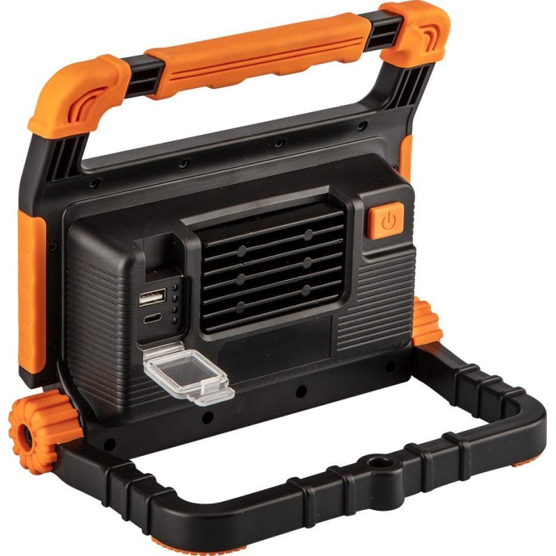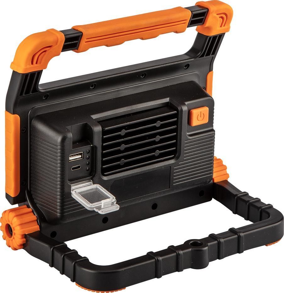 Akku-Scheinwerfer 3000 lm, 30 W, SMD-LED, 230-V-Ladegerät, Gehäuse aus ABS+Aluminium, Tragegriff, verstellbarer Standfuß, Li-Ionen-Akku 3,7 V, 8000 mAh, Powerbank-Funktion, USB-C-Kabel, Ladeanzeige, Ladezeit 4,5 h, IP 54, Abmessungen 210 x 180 x 55 mm, 3 Betriebsmodi: 3000 lm (2 Std.), 1500 lm (4 Std.), 750 lm (7,5 Std.)