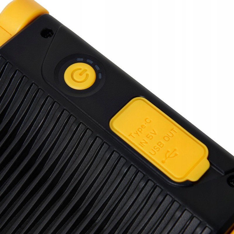 Der Scheinwerfer zeichnet sich durch sein klappbares Design aus, was den Transport und die Aufbewahrung erheblich erleichtert. Das robuste Gehäuse sorgt für Langlebigkeit und Widerstandsfähigkeit gegen Beschädigungen, was ihn zu einem zuverlässigen Werkzeug unter allen Bedingungen macht.