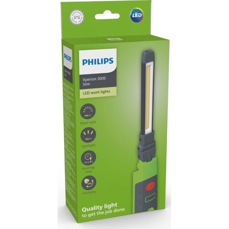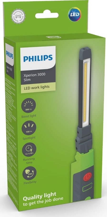 Die Arbeitsleuchte Philips Xperion 3000 Slim ist die perfekte Wahl sowohl für Profis als auch für Heimwerker, die eine zuverlässige Lichtquelle unter schwierigen Bedingungen benötigen. Dank ihres schlanken Designs eignet sie sich hervorragend für enge Räume und ist damit ein unverzichtbares Werkzeug für Inspektionen, Wartungsarbeiten und Reparaturen in Werkstätten.