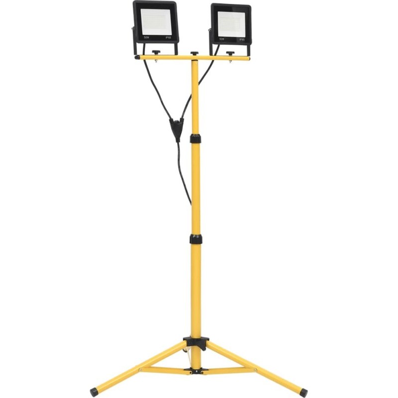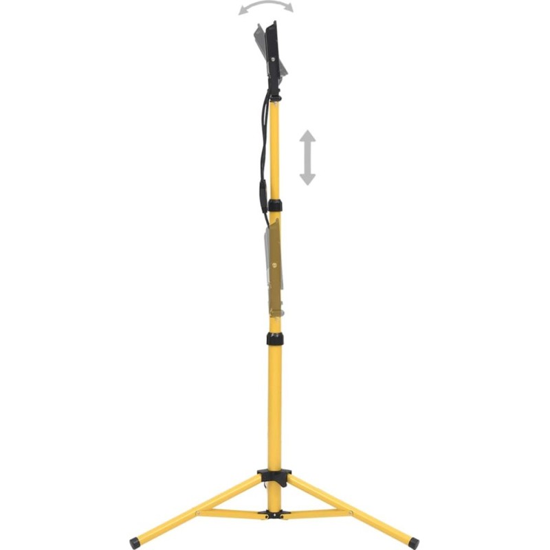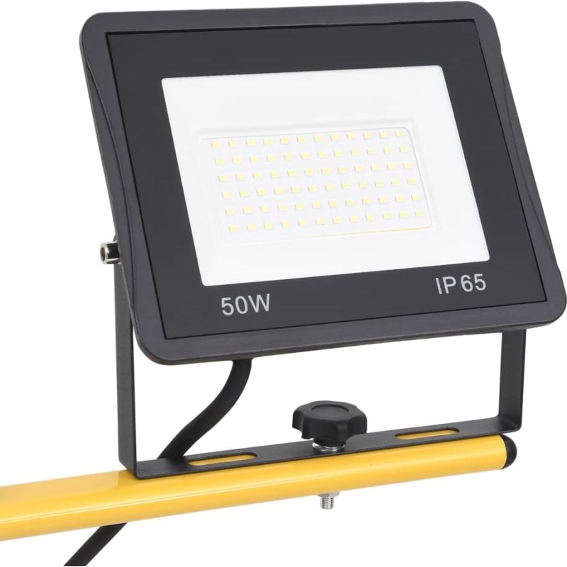 Dank des Aluminiumgehäuses und der Glasabdeckung sorgt diese Arbeitsleuchte für eine gute Wärmeableitung und ist zudem leicht. Mit einem Lichtstrom von 7000 lm und einem Abstrahlwinkel von 120° bietet sie eine hervorragende Ausleuchtung. Zudem strahlt der Scheinwerfer eine Farbtemperatur von 6000 K aus, um optimale Lichtverhältnisse rund um das Haus zu gewährleisten. Die Arbeitsleuchte steht auf einem Stahlstativ, was ihre Robustheit und Stabilität erhöht. Die Höhe lässt sich nach Belieben verstellen. Dank des fest angeschlossenen 3 m langen Netzkabels mit Stecker kann die Leuchte an jeder beliebigen Stelle im Raum aufgestellt werden.