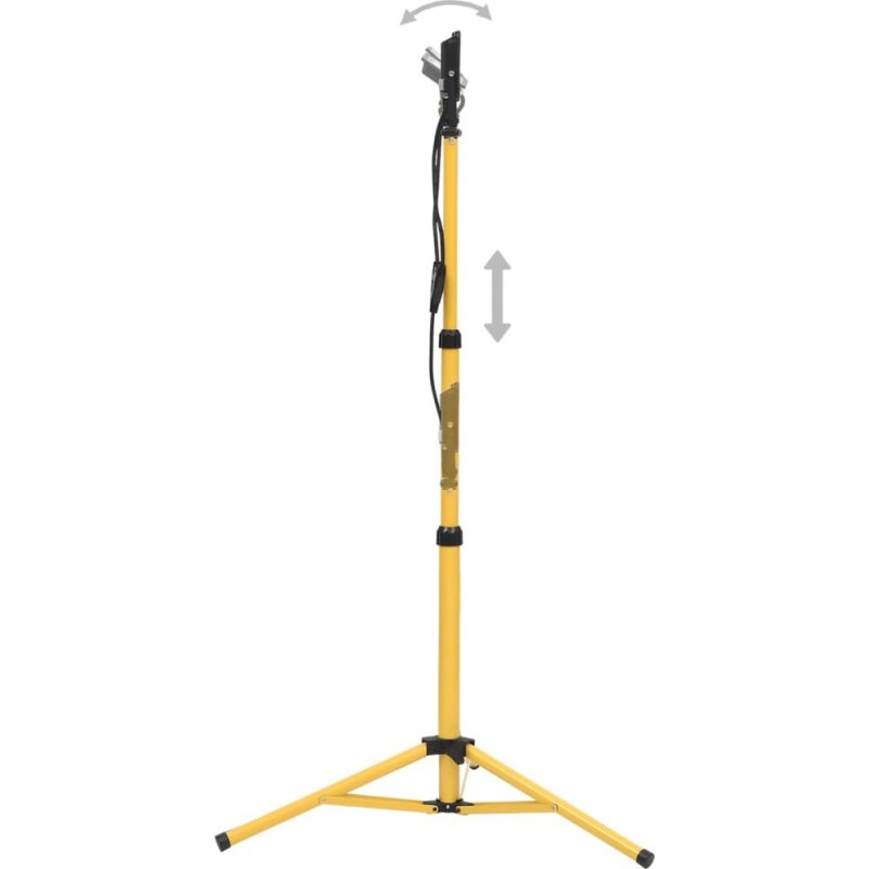 Dank des Aluminiumgehäuses und der Glasabdeckung sorgt diese Arbeitsleuchte für eine gute Wärmeableitung und ist zudem leicht. Der Lichtstrom von 7000 lm und der Abstrahlwinkel von 120° bieten eine hervorragende Ausleuchtung. Zudem strahlt der Scheinwerfer Licht mit einer Farbtemperatur von 3000 K aus und sorgt so für optimale Lichtverhältnisse in jedem Raum. Die Arbeitsleuchte steht auf einem Stahlstativ, was ihre Robustheit und Stabilität erhöht. Die Höhe lässt sich nach Belieben verstellen. Dank des fest angeschlossenen 3 m langen Netzkabels mit Stecker kann die Leuchte an jeder beliebigen Stelle im Raum aufgestellt werden.