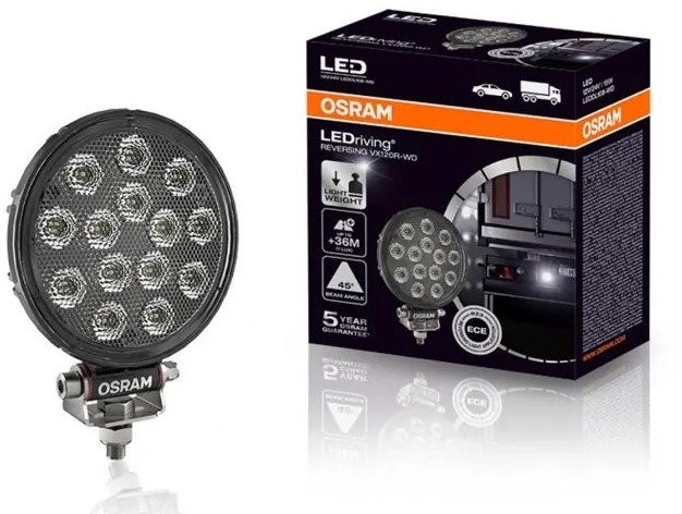 Die Rückfahrleuchte Osram REVERSING VX120R-WD ist die ideale Lösung für Fahrer, die bei Manövern auf Sicherheit und Komfort setzen. Dank moderner LED-Technologie sorgt die Leuchte sowohl unter schwierigen Geländebedingungen als auch auf öffentlichen Straßen für hervorragende Sichtverhältnisse. Eine Reichweite von bis zu 36 Metern und ein Lichtstrom von 1100 lm machen jedes Manöver einfacher und sicherer.