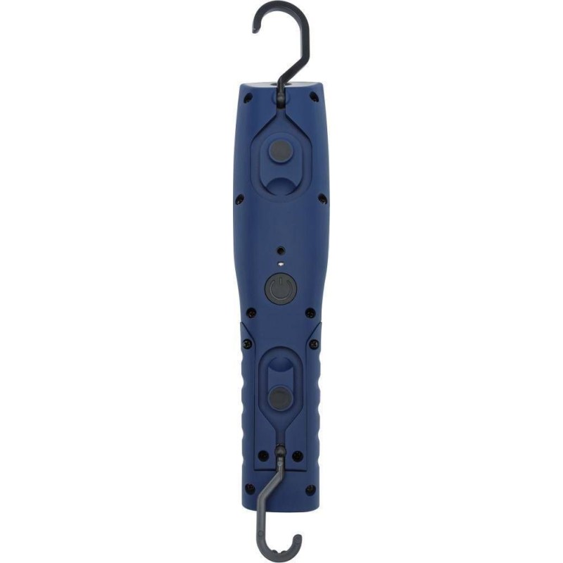 Ausführung: Robustes Kunststoffgehäuse, Hauptlichtstrahl und Punktlicht. Um 180° schwenkbarer Lampenkopf. An einem Ende der Lampe befindet sich ein Aufhängehaken, im Sockel ein Magnet für optimalen Halt. Lieferung inklusive 1800-mAh-Lithium-Ionen-Akku (3,7 V).