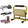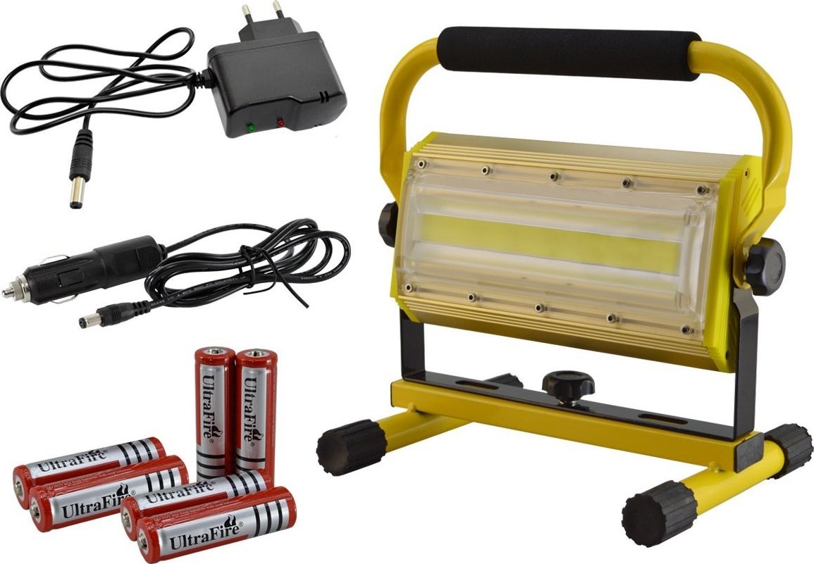 Im Lieferumfang enthalten: Strahler mit integrierter Lichtquelle x2, Teleskop-Arbeitsstativ, Stativrahmen, Ständer für Strahler x2, Netzladegerät 230 V x2, Autoladegerät 12 V x2, Garantiekarte, Kaufbeleg oder Rechnung