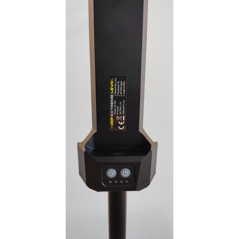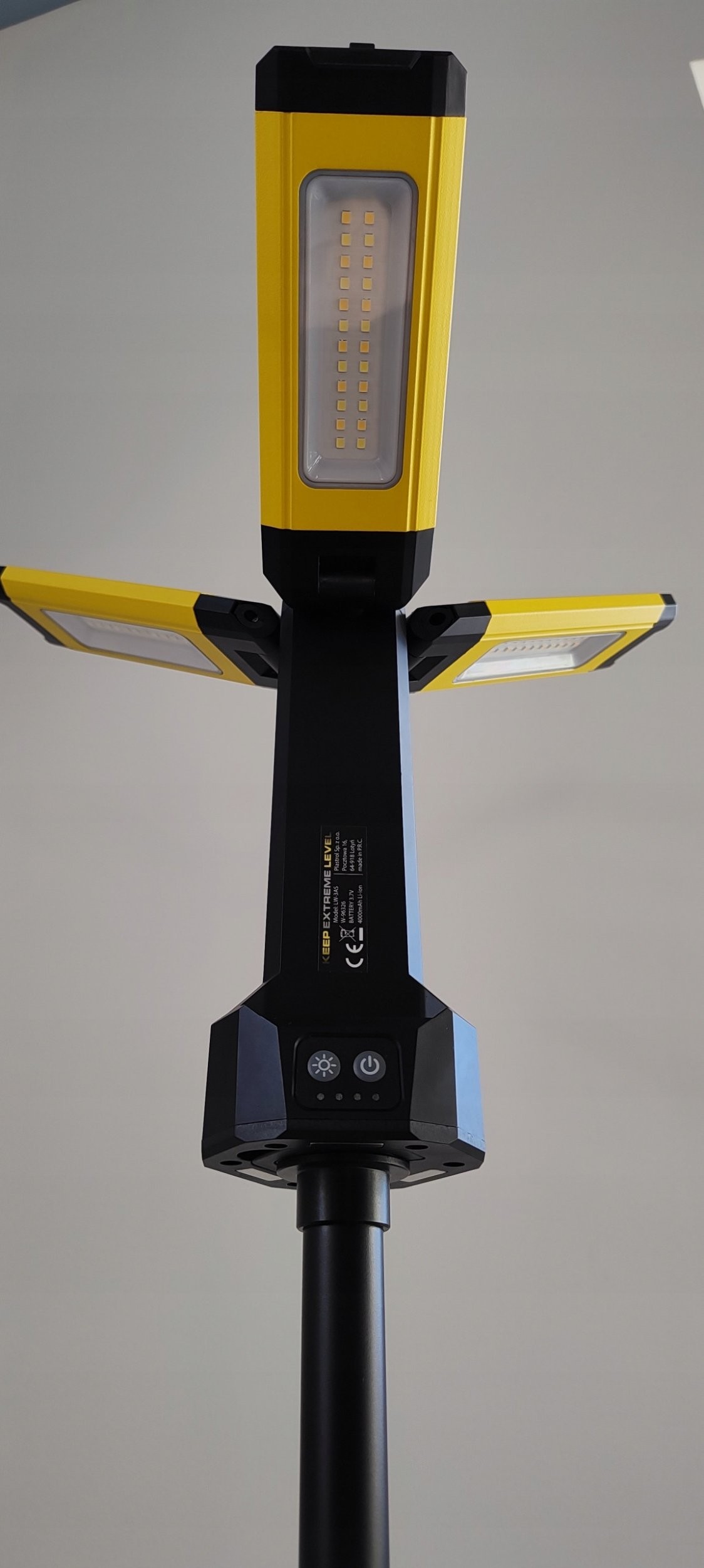 Das Teleskopstativ der Lampe ermöglicht eine einfache Höhenverstellung, was die Stabilität und den Bedienkomfort erhöht. Darüber hinaus verfügt die Lampe über einen klappbaren Haken, mit dem sie bequem an jeder beliebigen Stelle aufgehängt werden kann, und über einen USB-C-Anschluss zum Aufladen des Akkus.