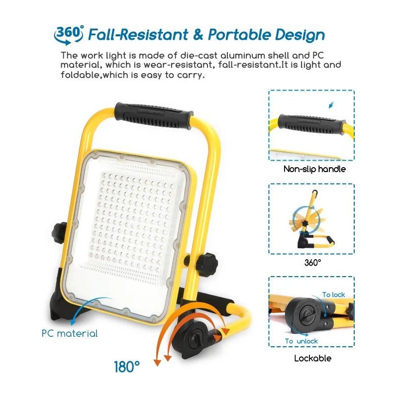 Aigostar Tragbare LED-Halogen-Arbeitsleuchte, über USB aufladbarer Scheinwerfer, 100 W/5 V Tragbare LED-Halogen-Arbeitsleuchte, über USB aufladbarer