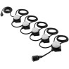 Mit einer Gesamtkabellänge von 14 m können die 5 LED-Einheiten à 10 W problemlos größere Arbeitsbereiche ausleuchten. Am Ende der LED-Lichterkette befindet sich eine zusätzliche AC-Buchse, die für Anwendungen mit einer maximalen Leistung von 1800 W genutzt werden kann. Der flache Lampenfuß mit integrierten Befestigungshaken und Befestigungslöchern ermöglicht die Aufstellung der Lichterkette in verschiedenen Anwendungsbereichen.