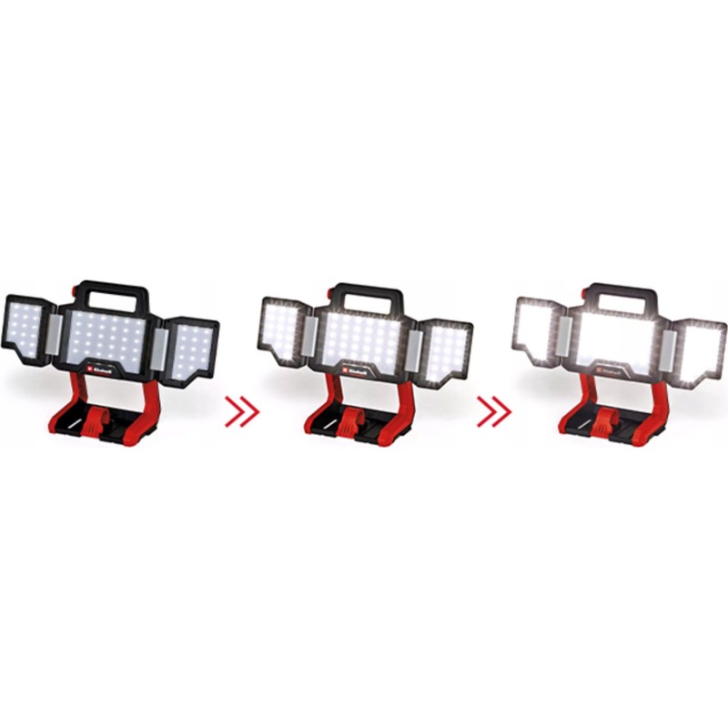 Die Einhell-Arbeitsleuchte TP-CL 18/3000 Li – Solo sorgt für Licht in der Dunkelheit, sei es auf der Baustelle, in der Werkstatt, in der Garage oder im Garten. Der leistungsstarke Lithium-Ionen-Akku aus der innovativen Power X-Change-Familie sorgt für optimale Helligkeit. Diese helle Lampe gehört zur Power X-Change-Familie, was bedeutet, dass jeder Akku mit jedem Gerät dieser intelligent konzipierten Systemserie kombiniert werden kann. Insgesamt 60 leistungsstarke und dimmbare LEDs mit einer Leistung von bis zu 3000 Lumen sorgen für optimale Ausleuchtung in jedem Winkel und jeder Ecke. Die kabellose Lampe Einhell TP-CL 18/3000 Li ist dank ihres schwenkbaren Leuchtenkopfes äußerst flexibel. Zudem lassen sich die beiden Leuchtfelder auf der linken und rechten Seite verstellen, um eine großflächige Ausleuchtung von bis zu 270° zu gewährleisten. Die neutrale weiße Lichtfarbe von 5700 K sorgt für helle Lichtverhältnisse. Die Akku-Leuchte ist tragbar und lässt sich dank des integrierten Tragegriffs mit weicher Griffoberfläche leicht transportieren. Dank zahlreicher Befestigungsmöglichkeiten über integrierte Ösen oder einen Befestigungshaken sind ihrer vielseitigen Einsatzmöglichkeiten keine Grenzen gesetzt. Lieferung ohne Akku oder Ladegerät. Diese sind separat erhältlich, beispielsweise als praktisches Starter-Set.