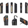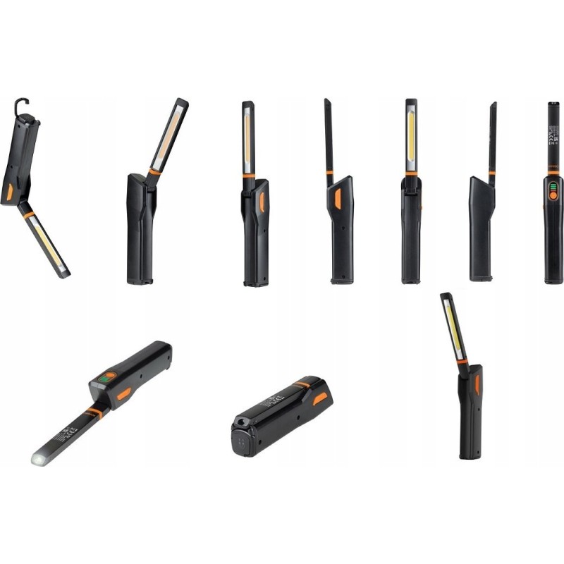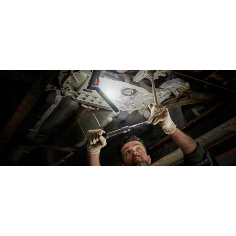 Das ultraflache Design in Kombination mit einer polygonalen Positionierung, die um 270° schwenkbar und um 180° drehbar ist, ermöglicht es, den Lichtstrahl genau dorthin zu lenken, wo er benötigt wird. Die Werkstattlampe verfügt über einen Akku und ist mit einer integrierten Ladezustandsanzeige ausgestattet.