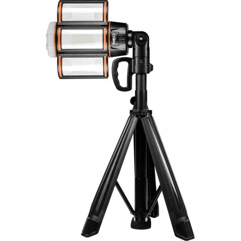 Die Leuchtlampe auf Stativ 5000 lm + Ladegerät 99-121 der Marke NEO TOOLS ist eine Lampe mit einer Lichtstärke von 5000 Lumen. Ausgestattet mit einem leistungsstarken Lithium-Ionen-Akku mit einer Kapazität von 11,1 Wh (5000 mAh) bietet sie eine lange Betriebsdauer und die Möglichkeit, während des Ladevorgangs weiterzuarbeiten. Das Set enthält ein praktisches Dreibeinstativ, das sich auf eine maximale Höhe von 2 m ausziehen lässt. Im Lieferumfang enthalten sind außerdem ein USB-C-Kabel und ein 3-A-Netzladegerät. Die NEO TOOLS-Leuchte zeichnet sich durch eine Lichtfarbe von 6500 K, einen CRI von 80 und eine Akkuladeanzeige aus. Dank der Möglichkeit, das Licht um 360 Grad oder gerichtet einzustellen, lässt sie sich an individuelle Bedürfnisse anpassen. Zudem ist die Lampe staub- und wasserdicht mit der mechanischen Widerstandsklasse IK07, was sie widerstandsfähig gegen verschiedene äußere Einflüsse macht. Die Ladezeit der NEO TOOLS-Lampe beträgt 5 Stunden, und die Leuchtdauer variiert je nach gewähltem Betriebsmodus: 15 Stunden im niedrigen Modus, 5,5 Stunden im mittleren Modus, 2,5 Stunden im hohen Modus, 12 Stunden im Taschenlampenmodus oder sogar 20 Stunden im roten Stroboskopmodus. Eine zusätzliche LED-Lampe/Taschenlampe an der Oberseite sowie die Verstellbarkeit der Lampe erhöhen ihre Funktionalität. Ein Tragegriff erleichtert den Transport. Die NEO TOOLS-Arbeitsleuchte ist eine gute Wahl für Mechaniker und Bauarbeiter.