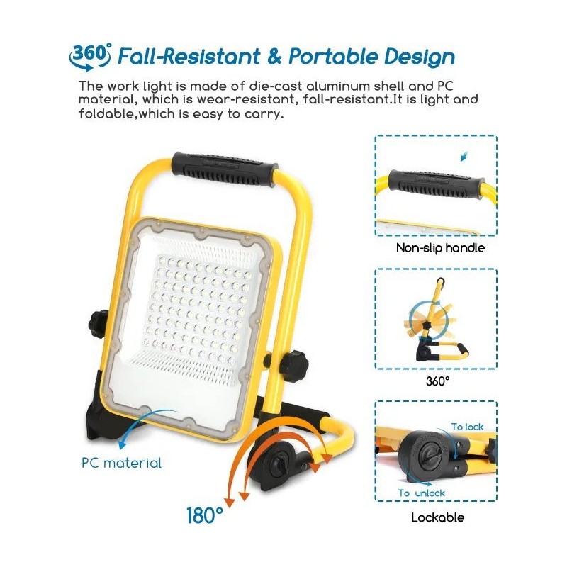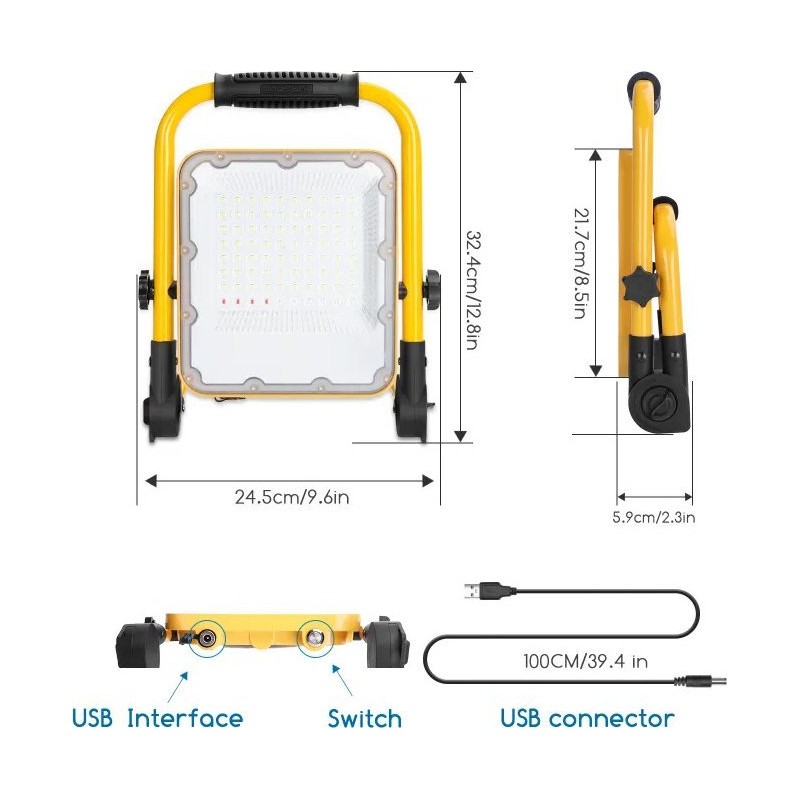 Aigostar Tragbare LED-Halogen-Arbeitsleuchte, über USB aufladbar, Scheinwerfer 50 W/5 V Tragbare LED-Halogen-Arbeitsleuchte, über USB aufladbar,