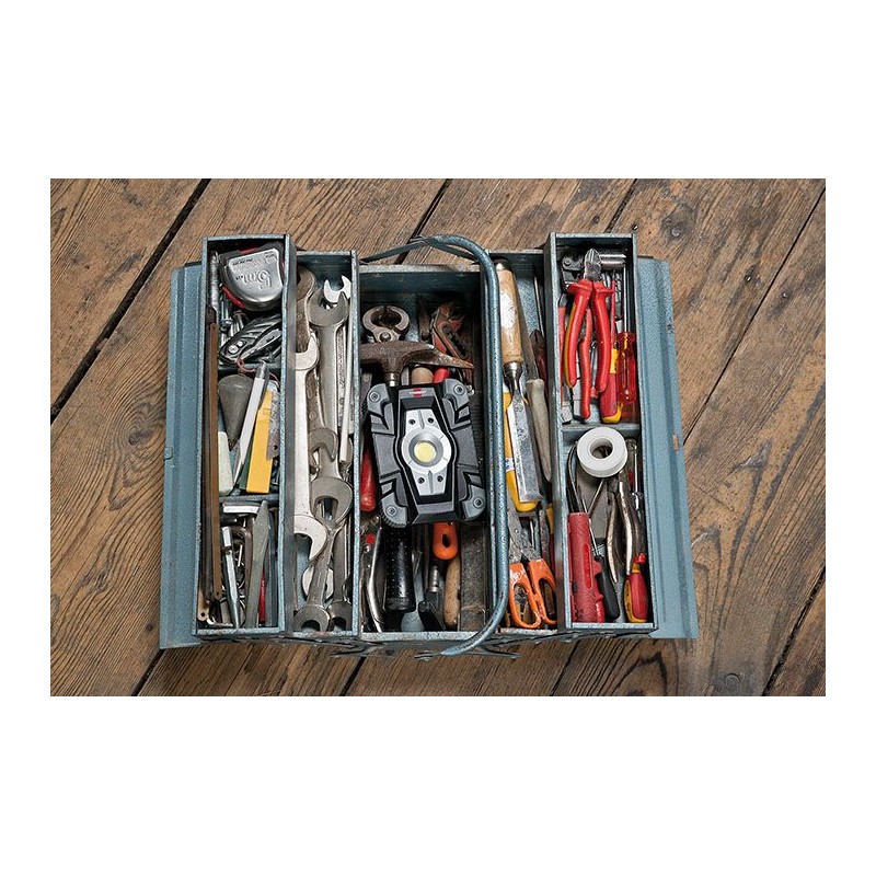 • Sehr helles Arbeitslicht dank des eingebauten Akkus, auch dort verfügbar, wo kein Anschluss an das Stromnetz möglich ist.